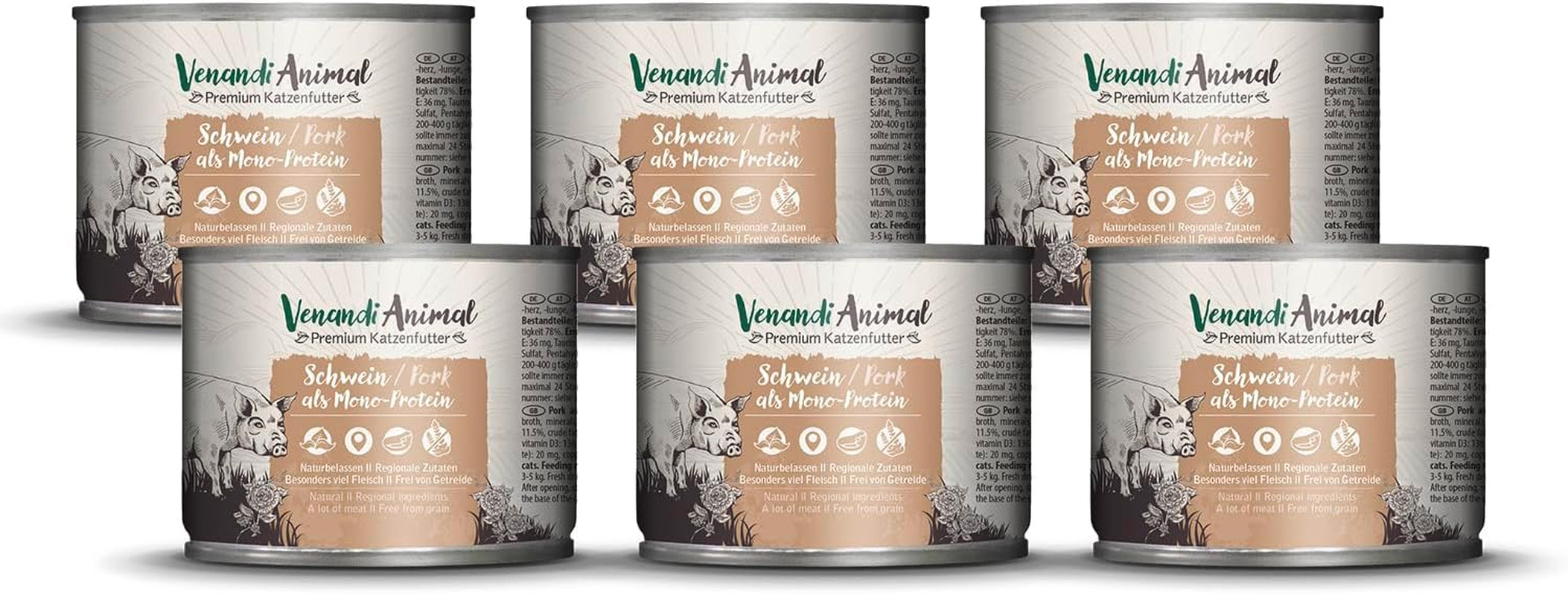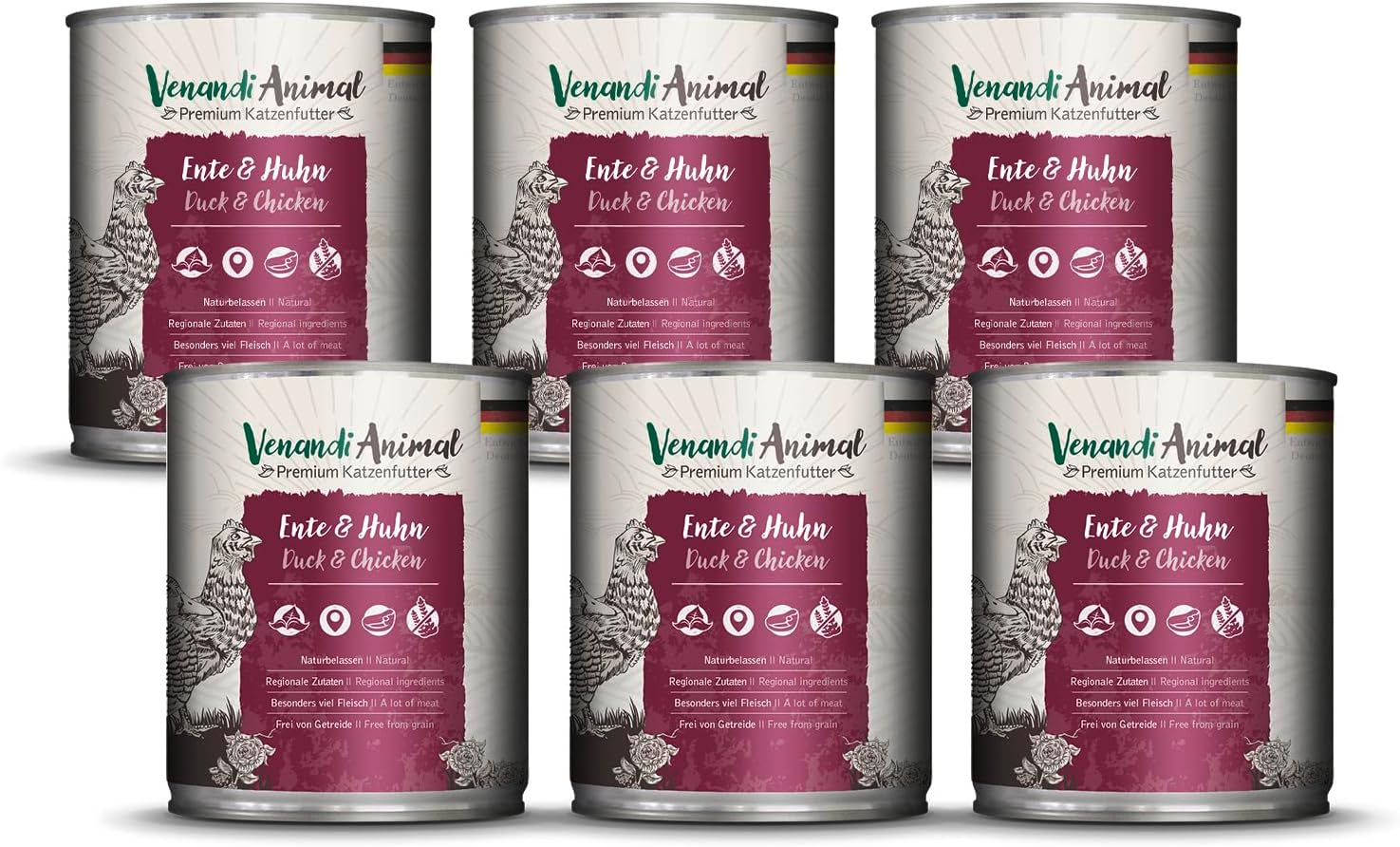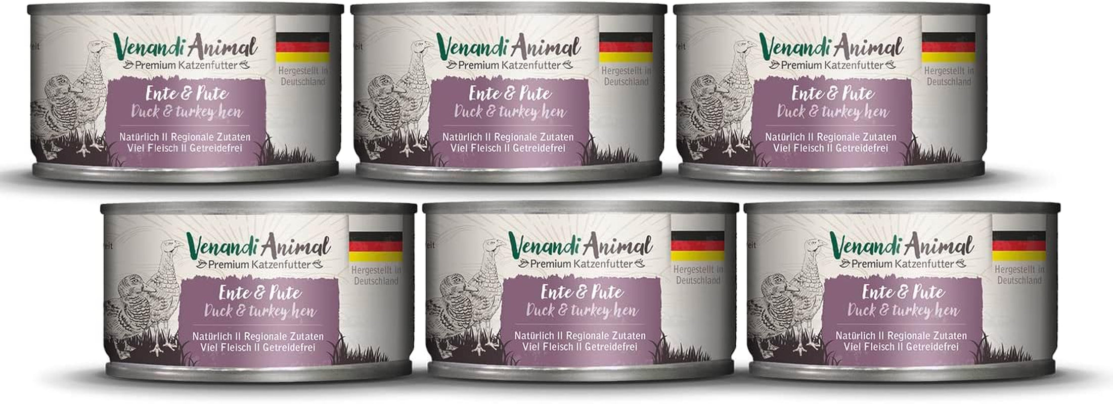 Venandi Animal Premium Nourriture humide pour chats, Tasting Pack III, poulet, dinde, bœuf, poulet + lapin, veau, dinde, 6 X 200 G, sans céréales et naturel, 1,2 Kg -