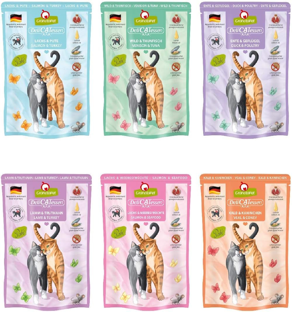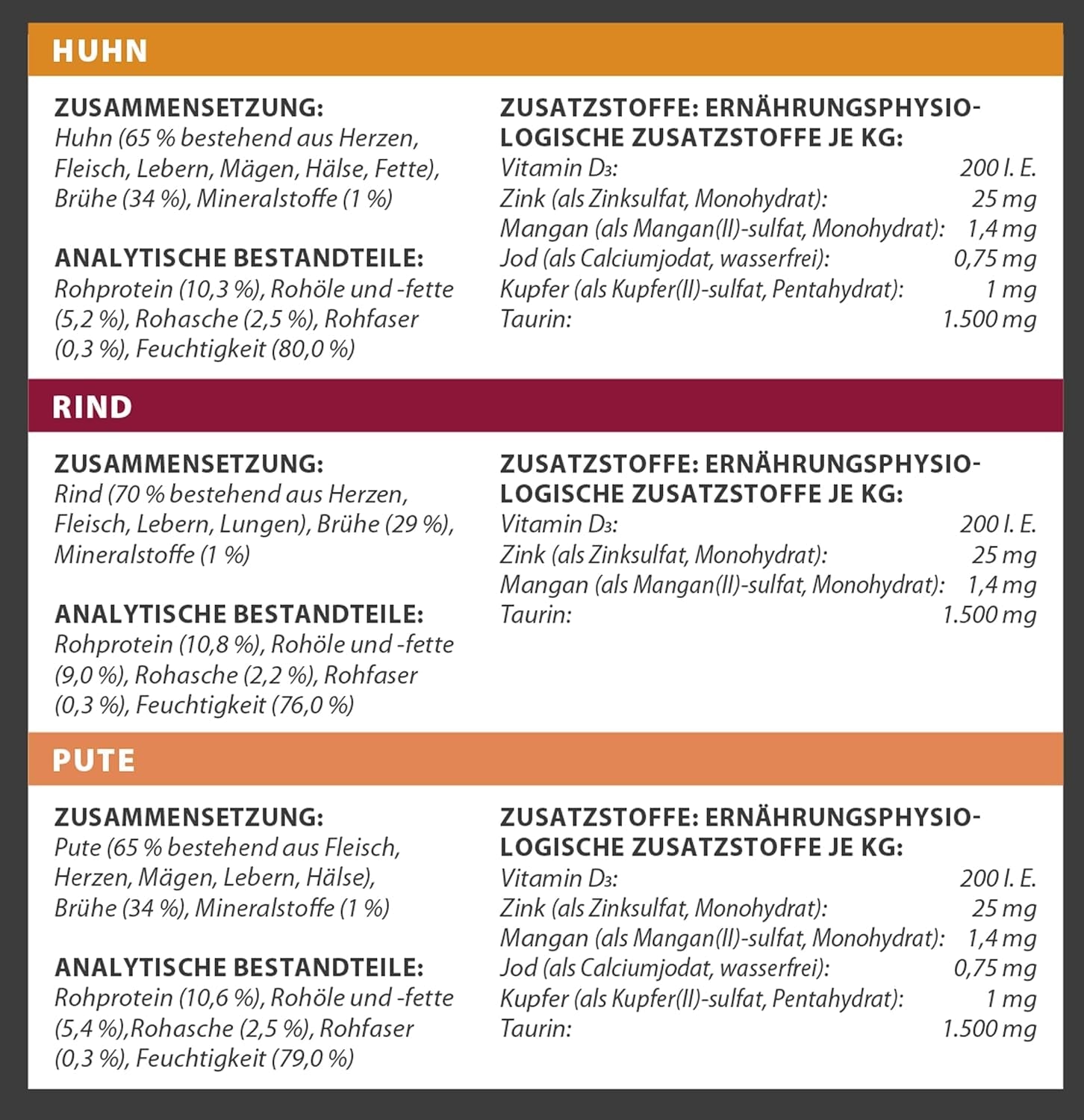 Dehner Premium Cat Food Sensitive Multipack, nourriture humide, pour chats nutritionnellement sensibles, 4 X poulet/bœuf/dinde chacun, 12 X 100 g sacs (1,2 kg) -