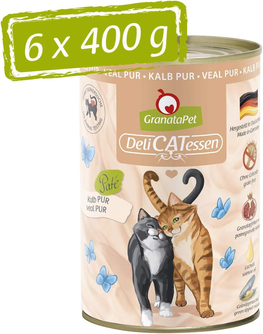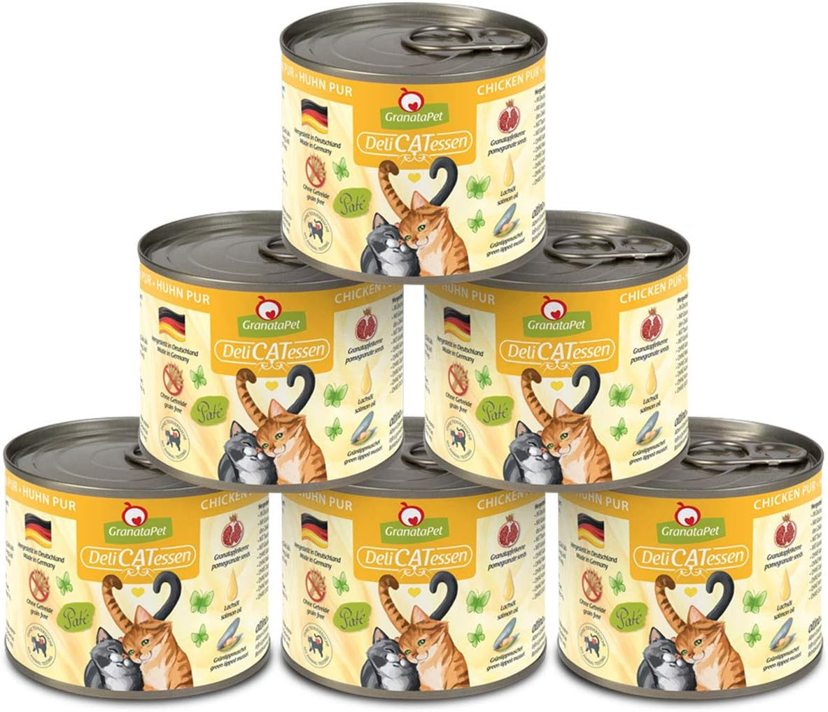 Granatapet Delicatessen Poulet PUR, nourriture humide pour chats, sans céréales ni sucre ajouté, nourriture pour chats à haute teneur en viande et en huiles de haute qualité, 6 X 400 G -
