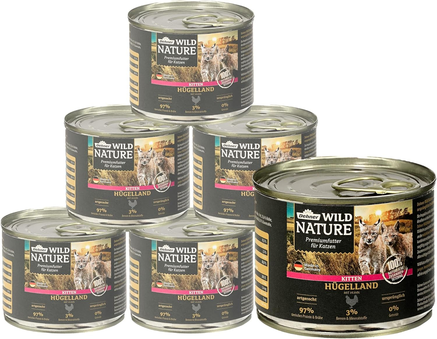 Dehner Wild Nature Kitten Hügelland nourriture pour chat, nourriture humide sans céréales/sans sucre pour jeunes chats, chiots, boîte 6 X 200 G (1,2 kg) -