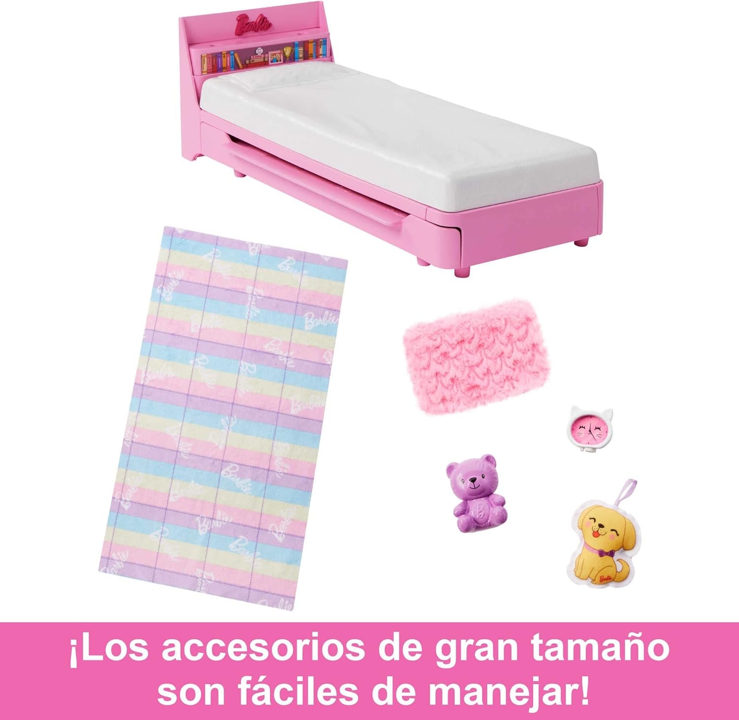 Barbie Ma Première Série, Lit Roulant, Lit avec Accessoires, Réveil, Ours en Peluche, Ensemble Noir, Oreiller, Poupée, Cadeau Enfant, Jouets 3 Ans, Hmm64