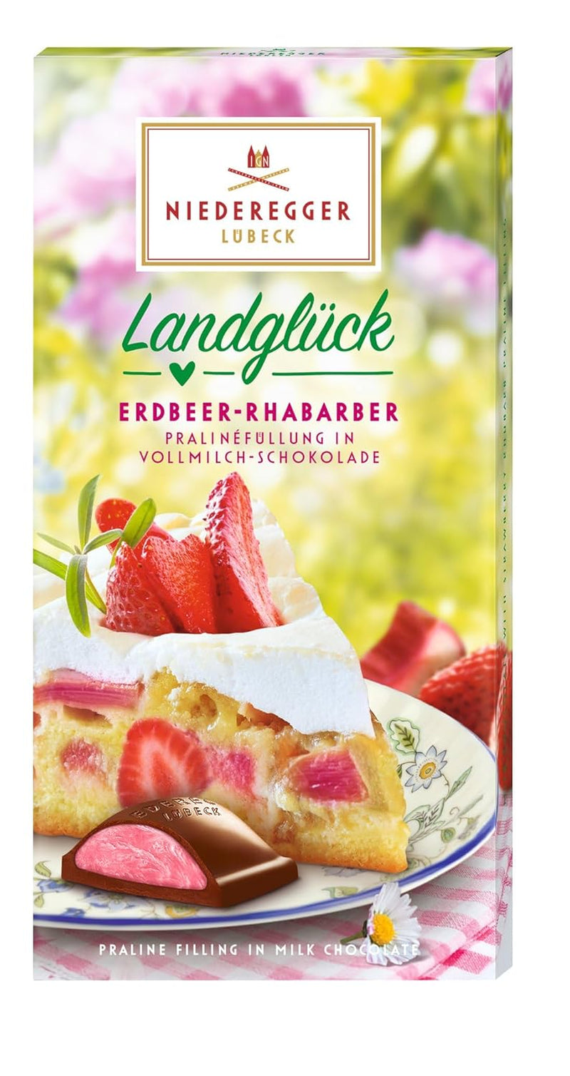 Barre de chocolat Niederegger fraise - rhubarbe 100 grammes