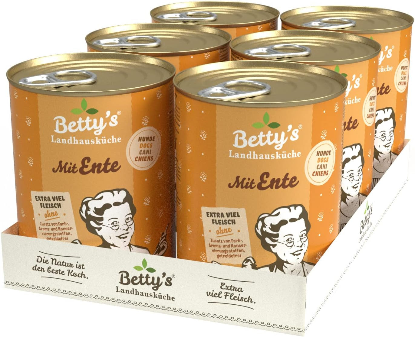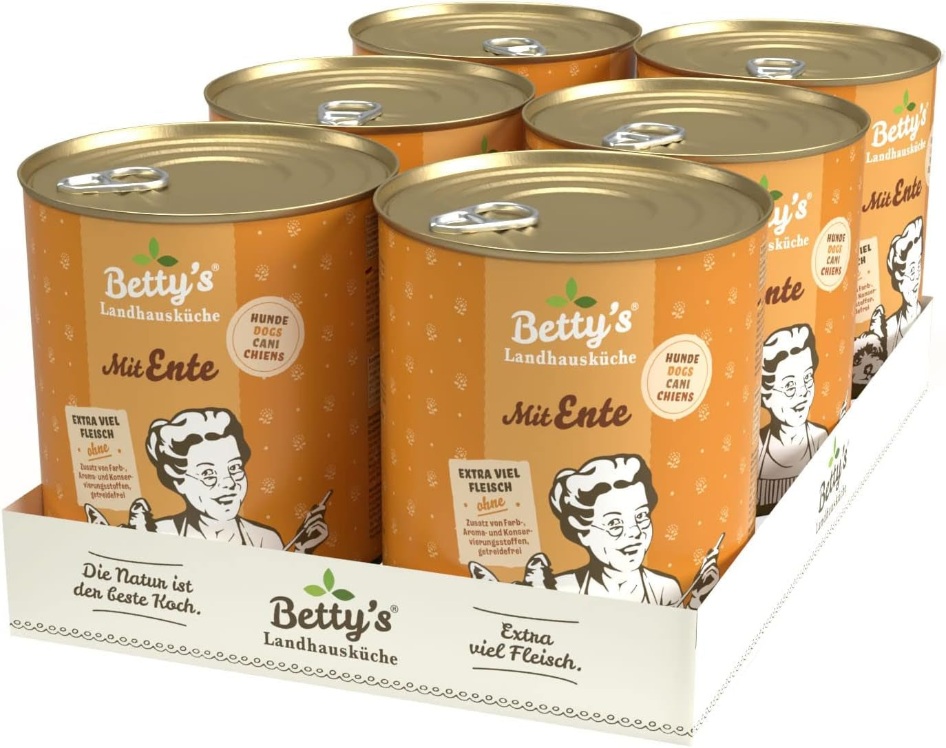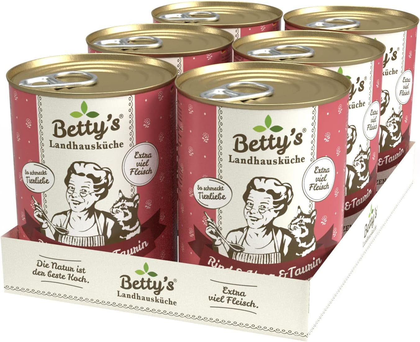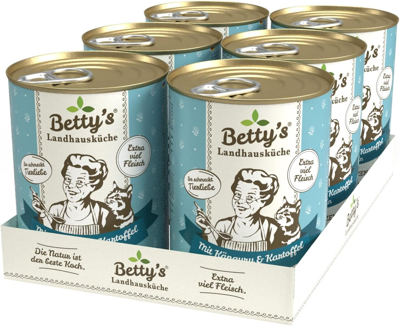 Boîte de nourriture humide pour chat Betty'S Landhausküche, Sans céréales, Meilleure qualité, Viande de haute qualité, Cuisson douce, Convient à toutes les races de chats, Poulet et faisan à l'huile de bourrache 6 X 200 G