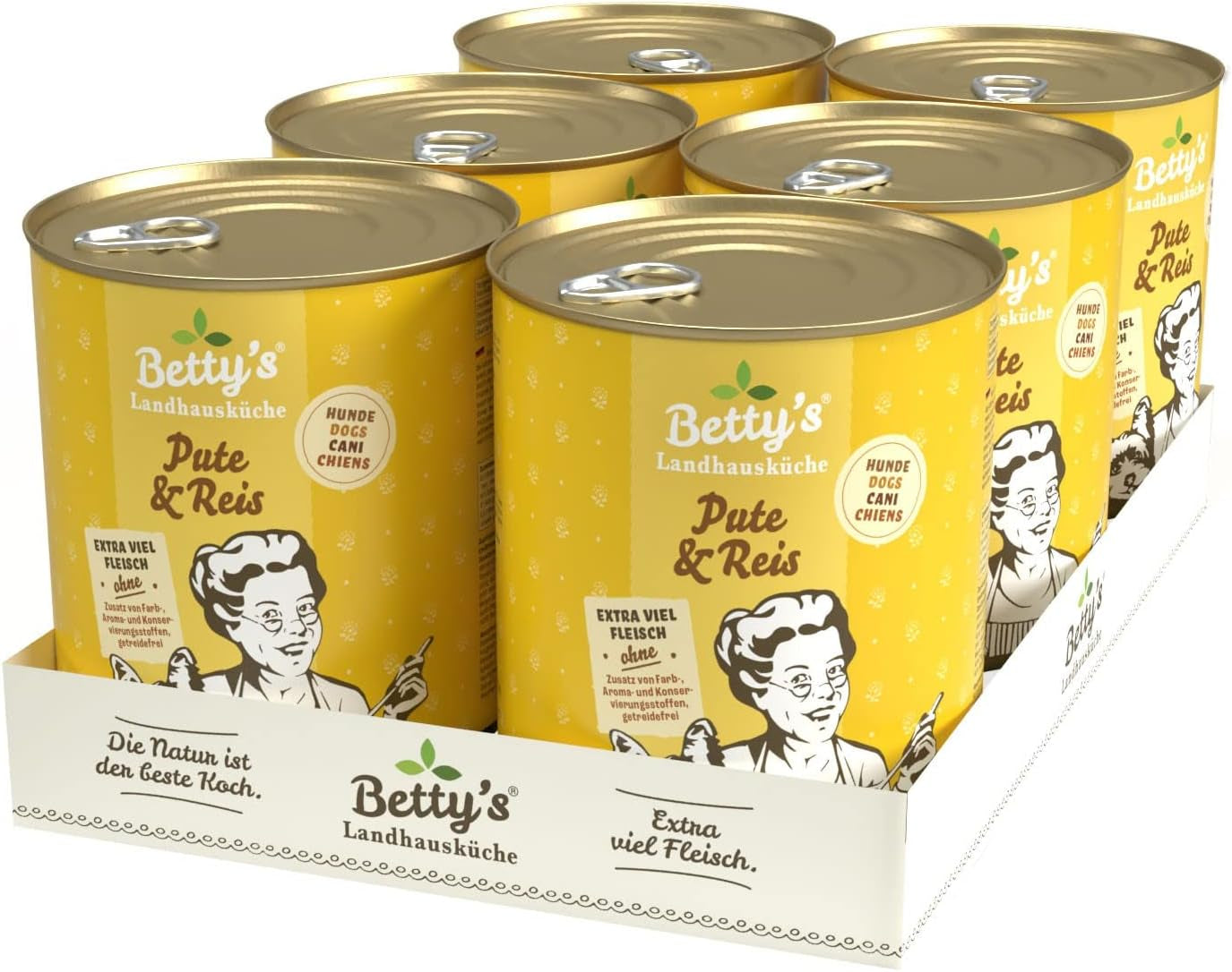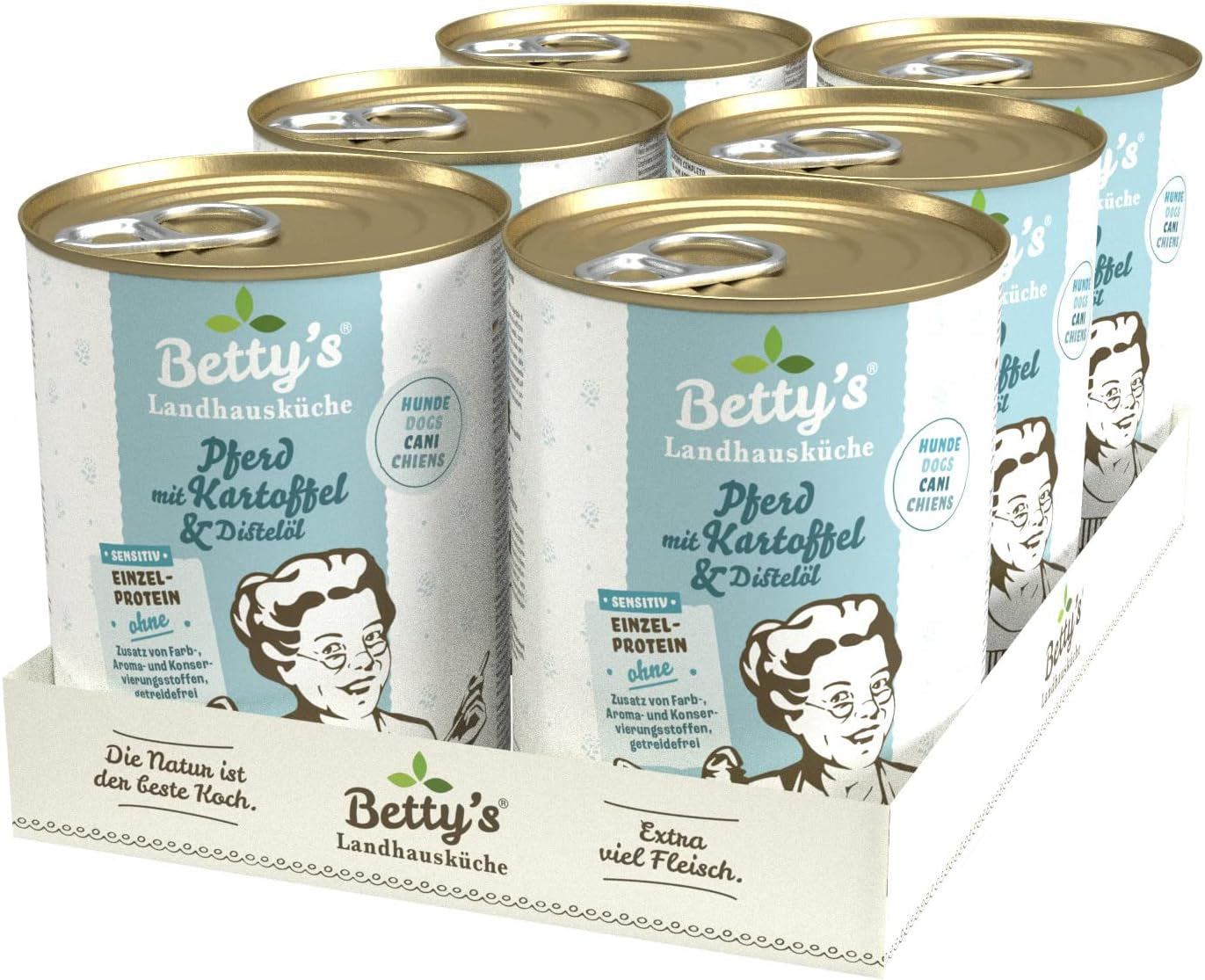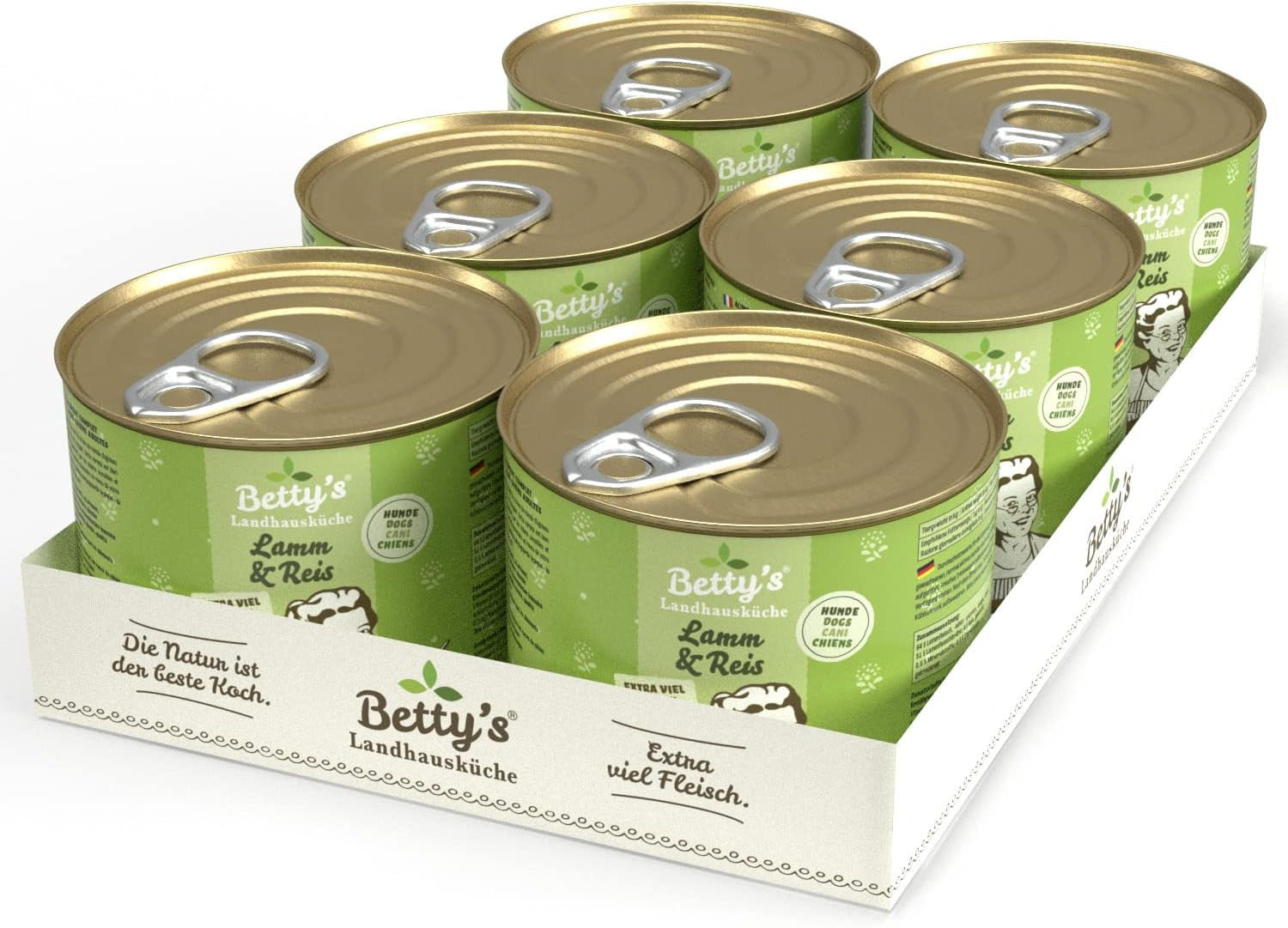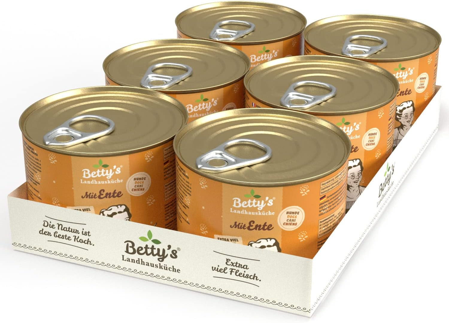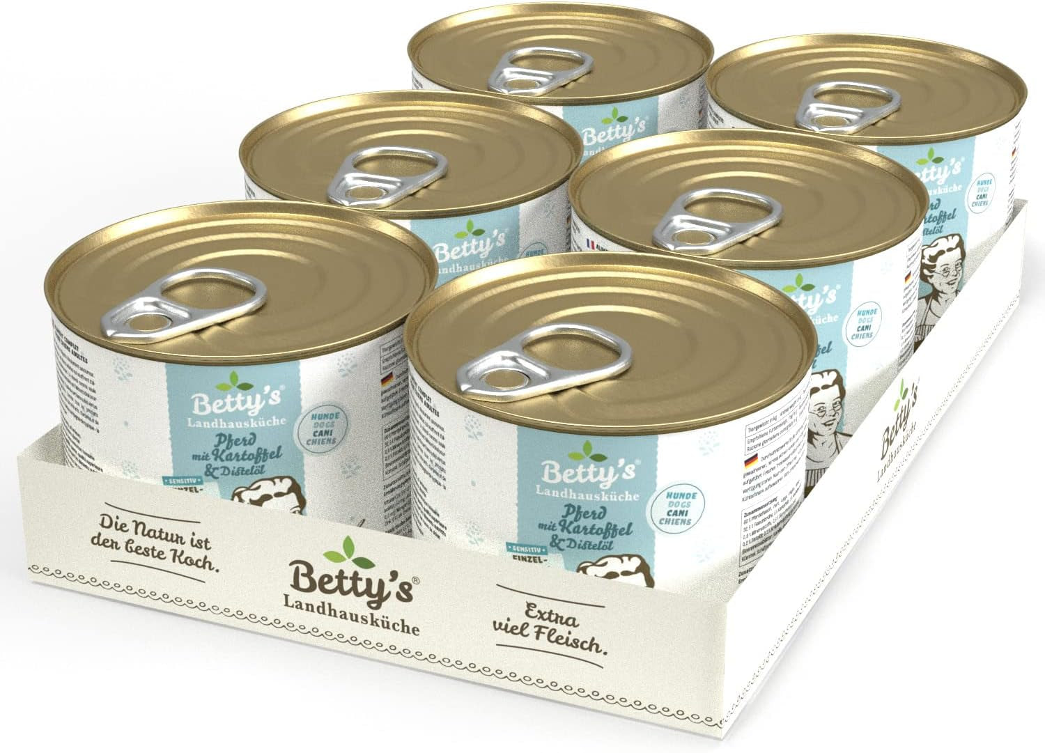 Boîte de nourriture humide pour chat Betty'S Landhausküche, Sans céréales, Meilleure qualité, Viande de haute qualité, Cuisson douce, Convient à toutes les races de chats, Poulet et faisan à l'huile de bourrache 6 X 200 G