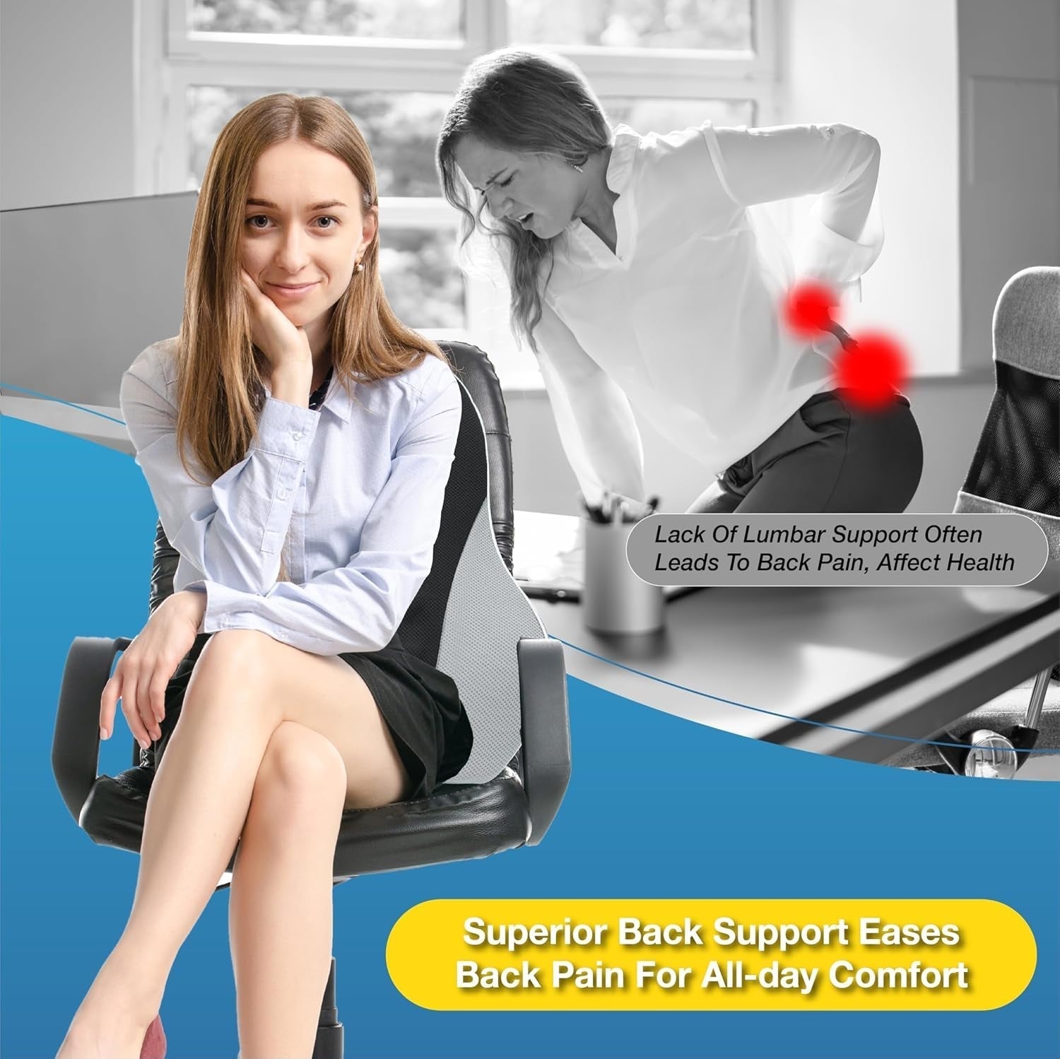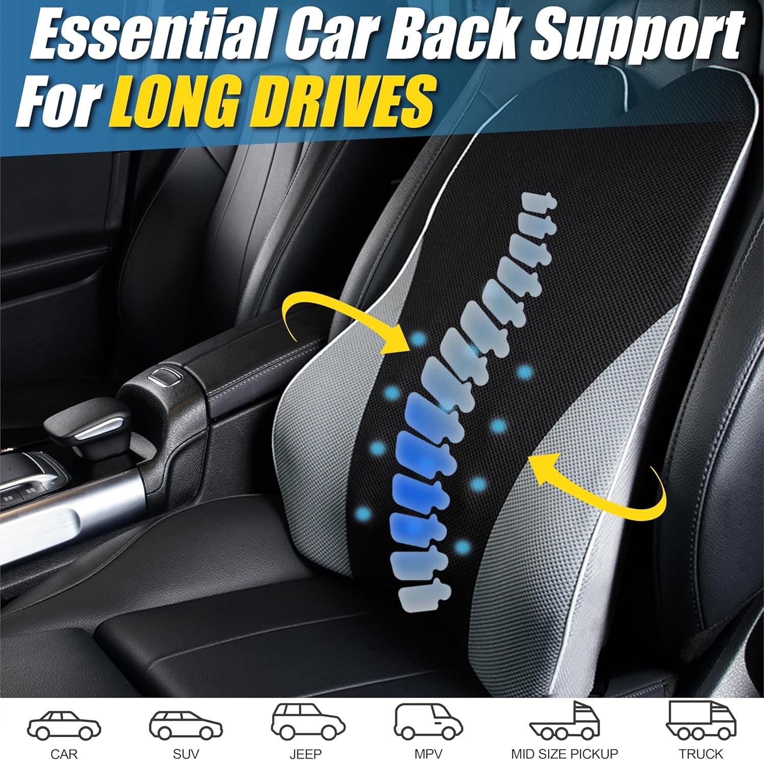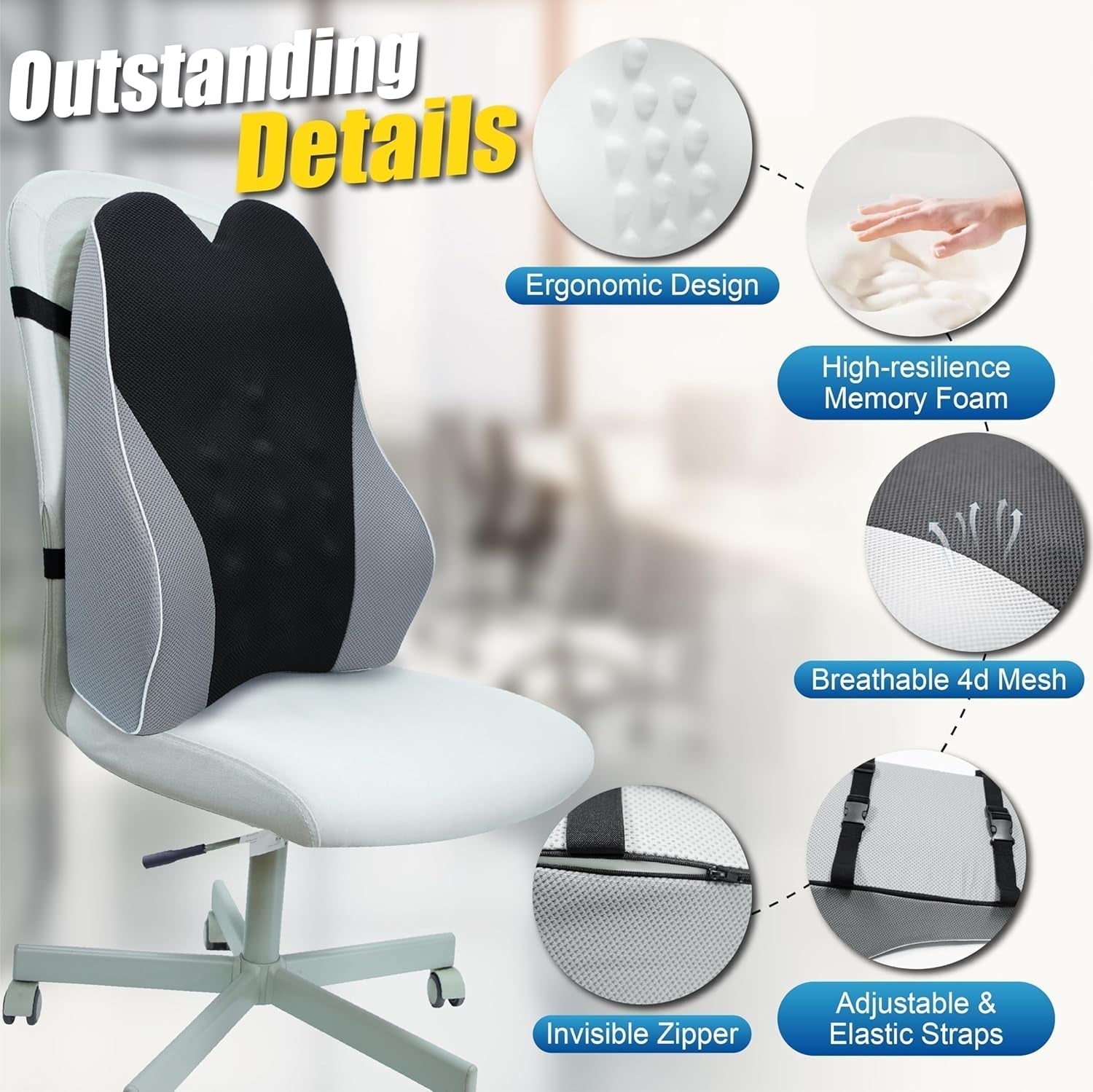 - Sangles réglables et large applicabilité : ce support de dossier de chaise est doté de deux sangles élastiques réglables et d'un fond antidérapant pour les coussins lombaires. Coussin de soutien lombaire pour voiture, camion, chaise de bureau, bureau, fauteuil roulant, maison, fauteuil, etc. Il reste stable, sûr et confortable pendant la conduite ou le travail.