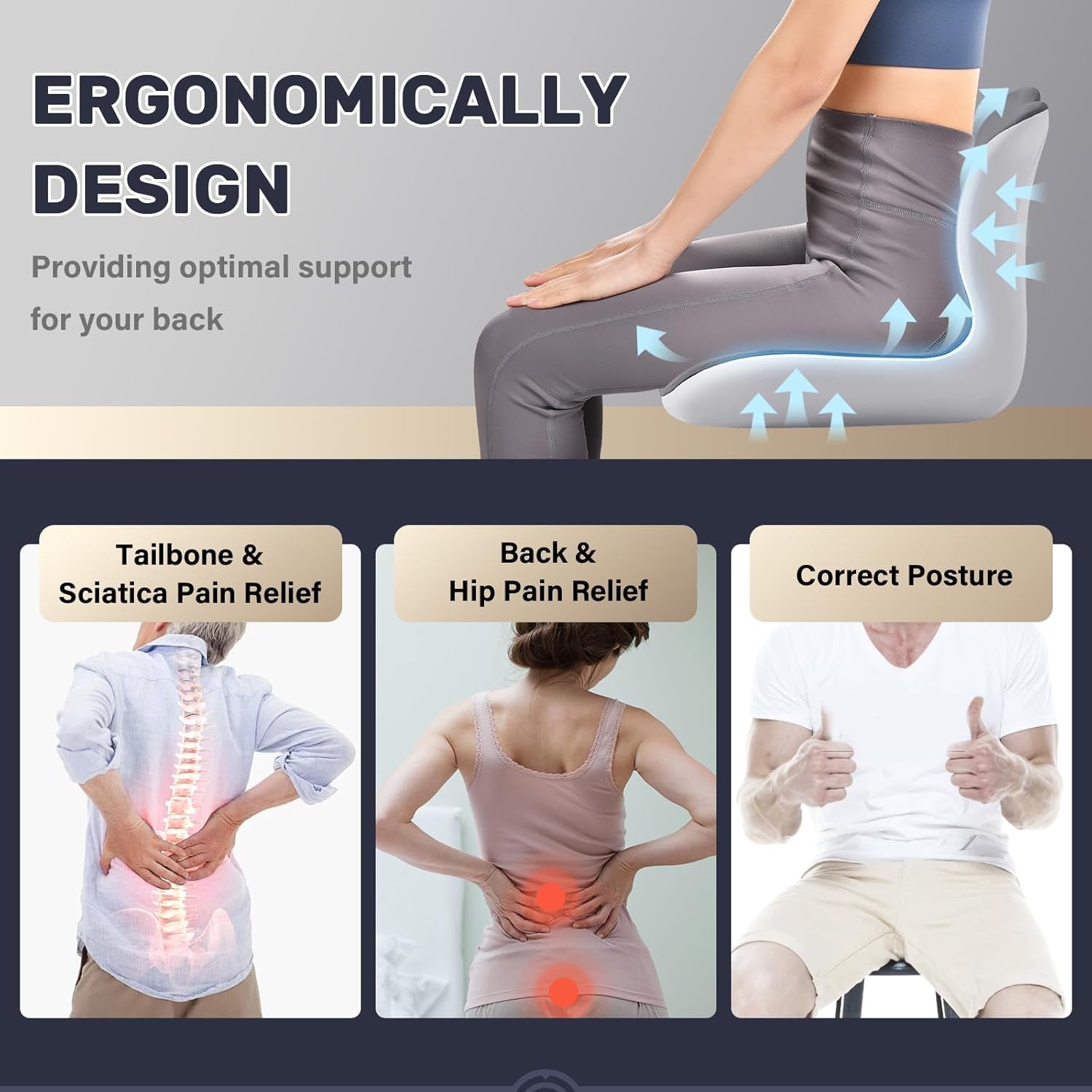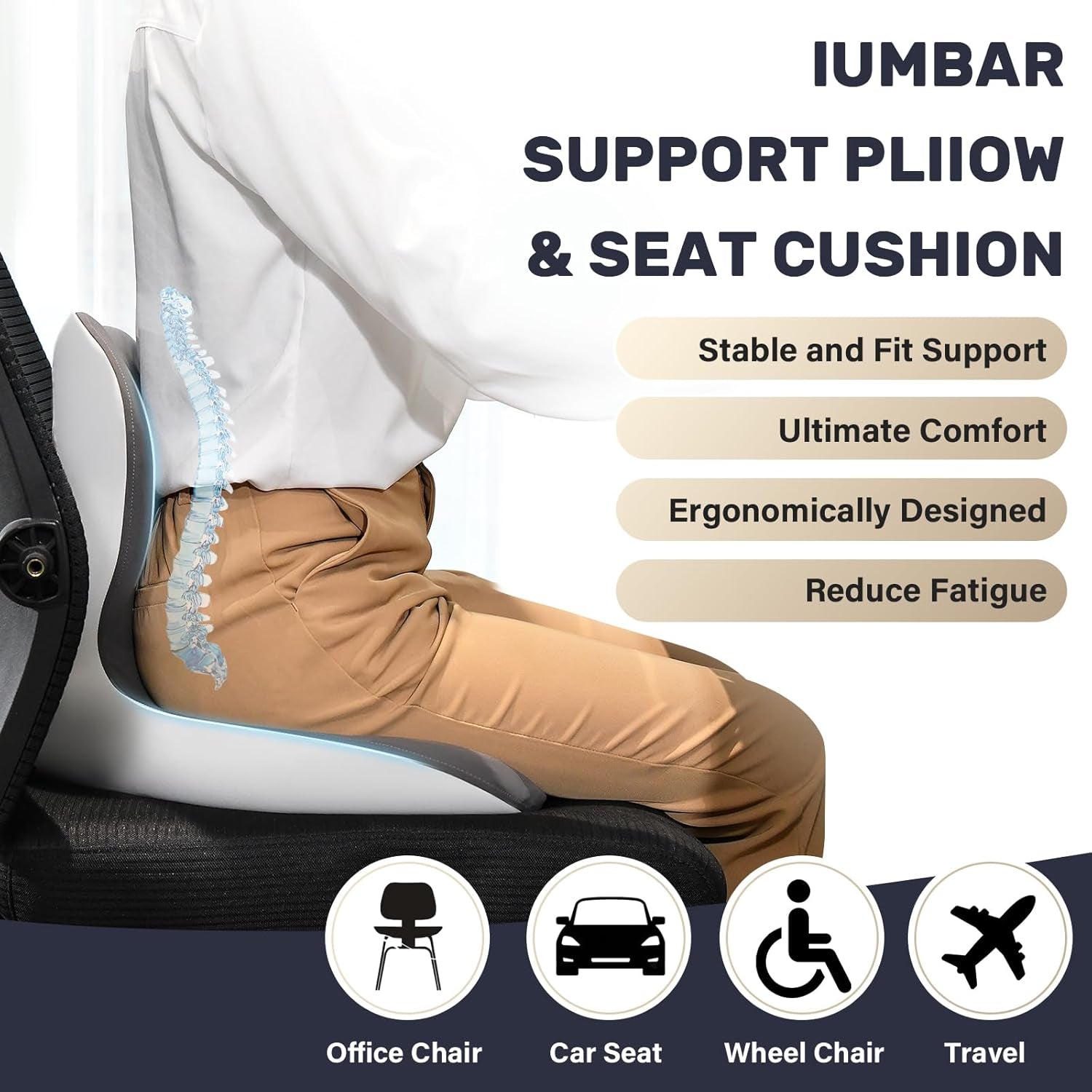 Coverado Coussin de chaise et coussin de soutien lombaire une pièce pour chaise de bureau et siège de voiture, coussin de soutien ergonomique en mousse à mémoire de forme, coussin de soulagement des douleurs du dos et du coccyx