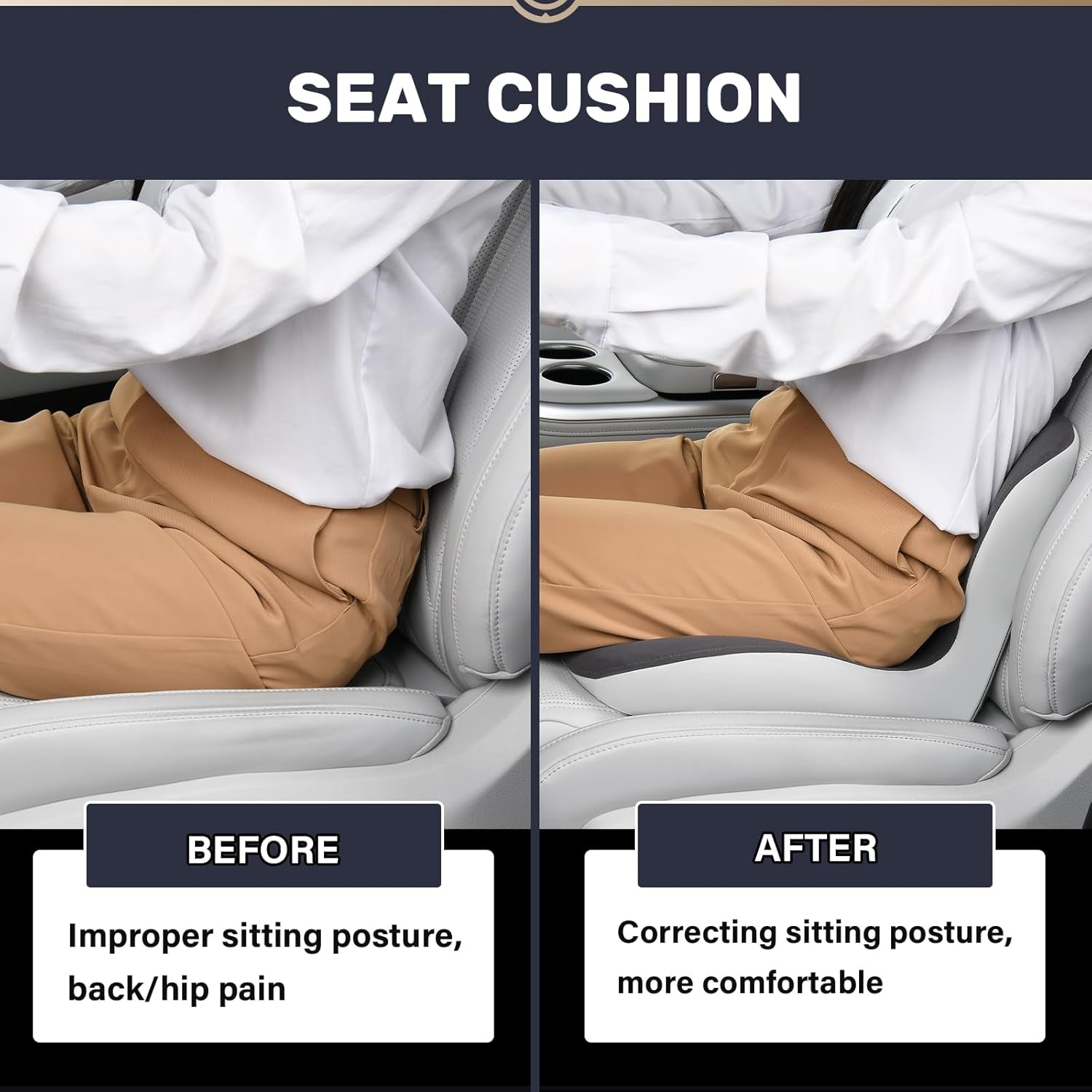 - Confort du siège et réduction de la pression : notre coussin de siège conducteur avec coussin de soutien lombaire est fabriqué en mousse à mémoire de forme haute densité à rebond lent et offre un soutien solide. Le support dorsal de voiture peut absorber et soulager le stress de votre corps. Les oreillers peuvent soulager vos douleurs à la hanche et à la sciatique. Idéal pour les trajets en voiture ou une pause à la maison