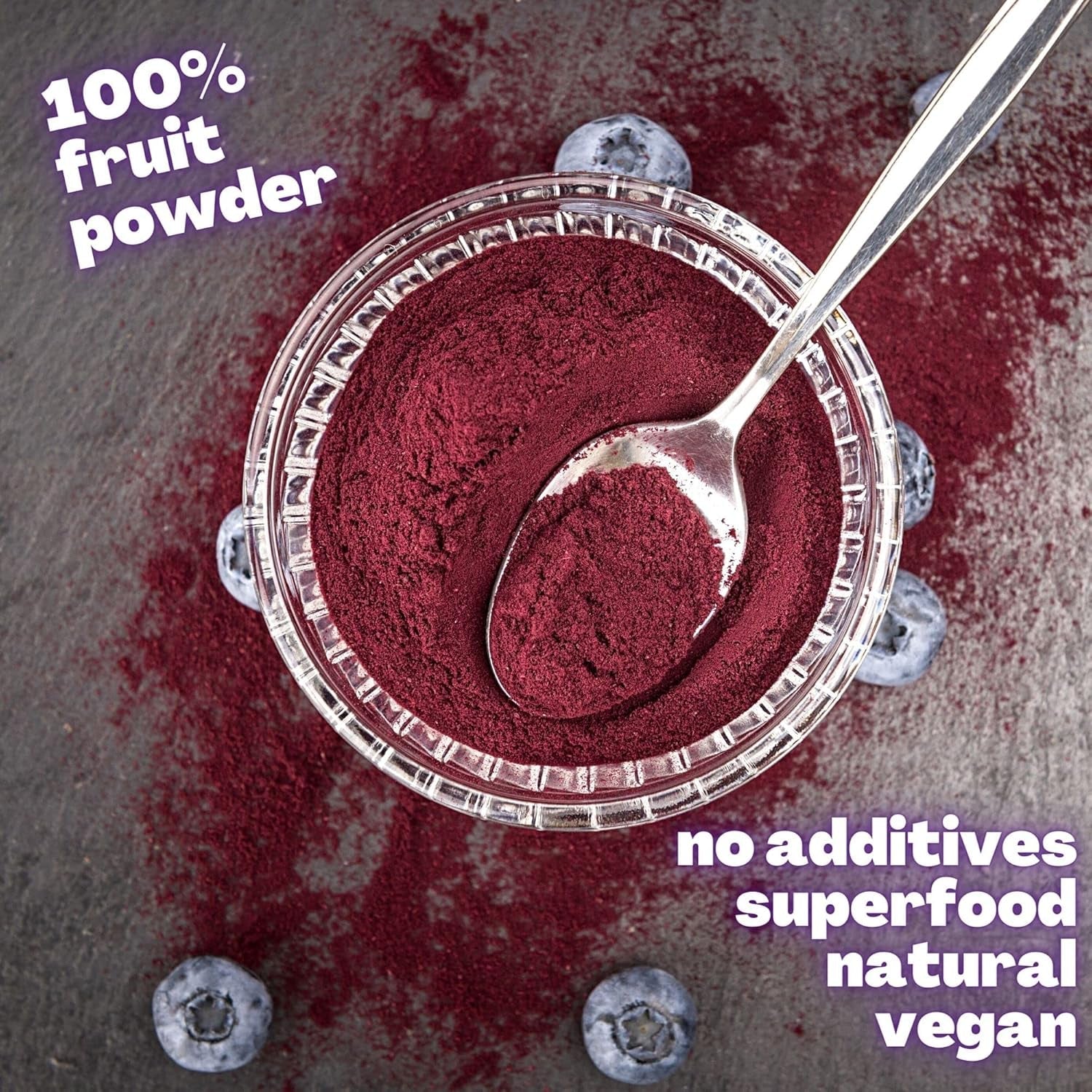 - Great fruit powder for smoothies or breakfast. Made from wild blueberries.