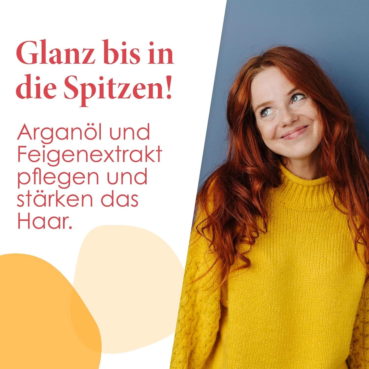- La formule de soin végétalienne à l'huile d'argan du Maroc et à l'extrait de figue est particulièrement adaptée aux cheveux colorés et abîmés : elle soigne les cheveux et leur apporte une brillance éclatante.