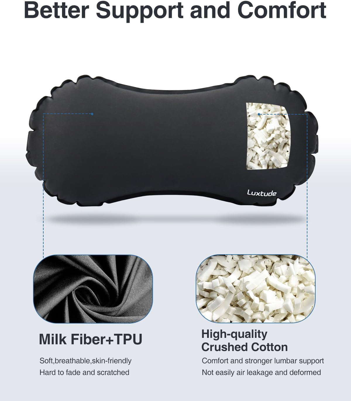 Luxtude Oreiller lombaire gonflable, oreiller de soutien lombaire portable pour les voyages en avion et en voiture, oreiller de voyage gonflable, oreiller de soutien du dos, oreiller de nuque, oreiller pour le bas du dos