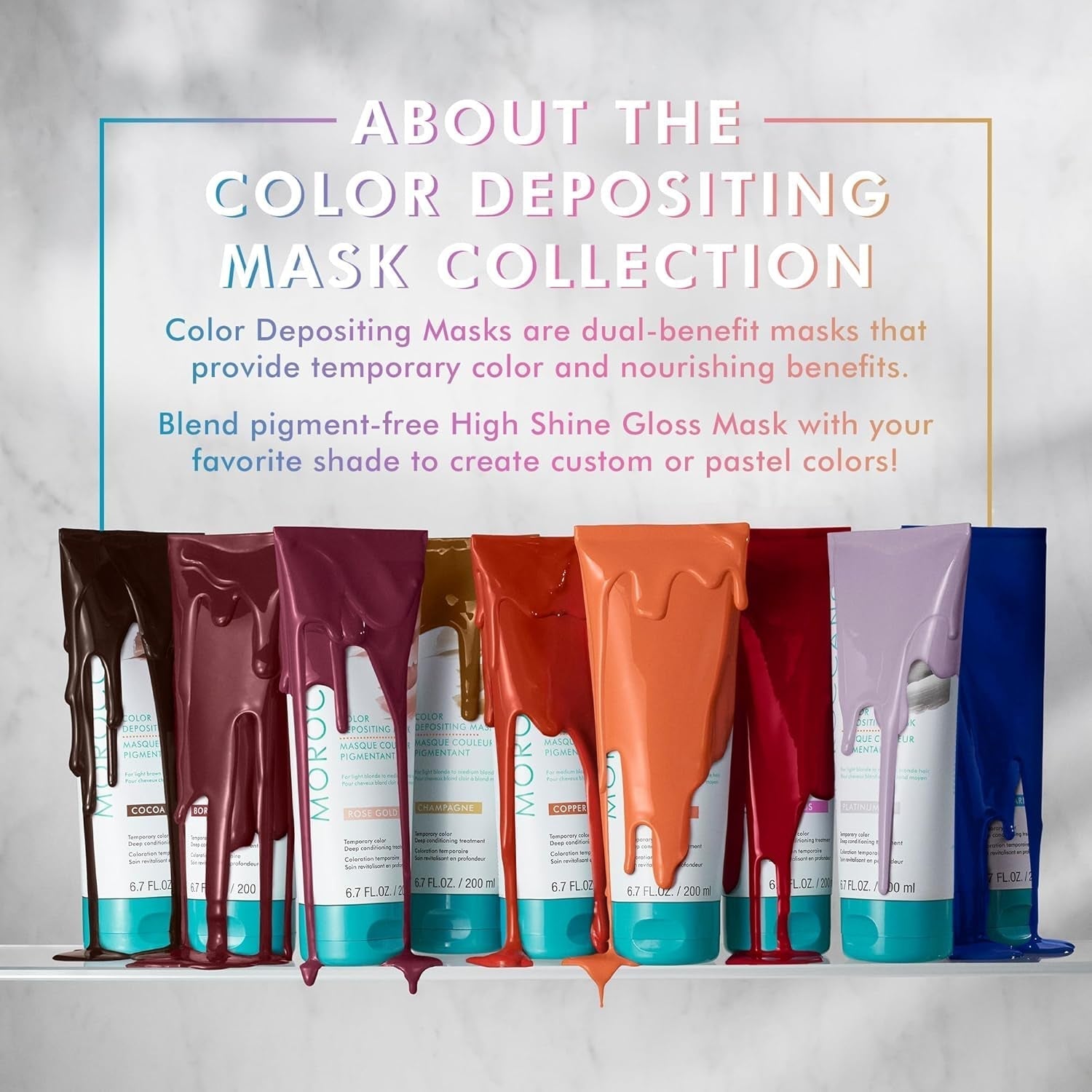Le masque brillant brillant est une version sans pigment et orientée brillance des masques déposants de couleur de Marocainoil et peut être combiné avec d'autres nuances de la collection pour assortir la couleur ou créer des nuances pastel.