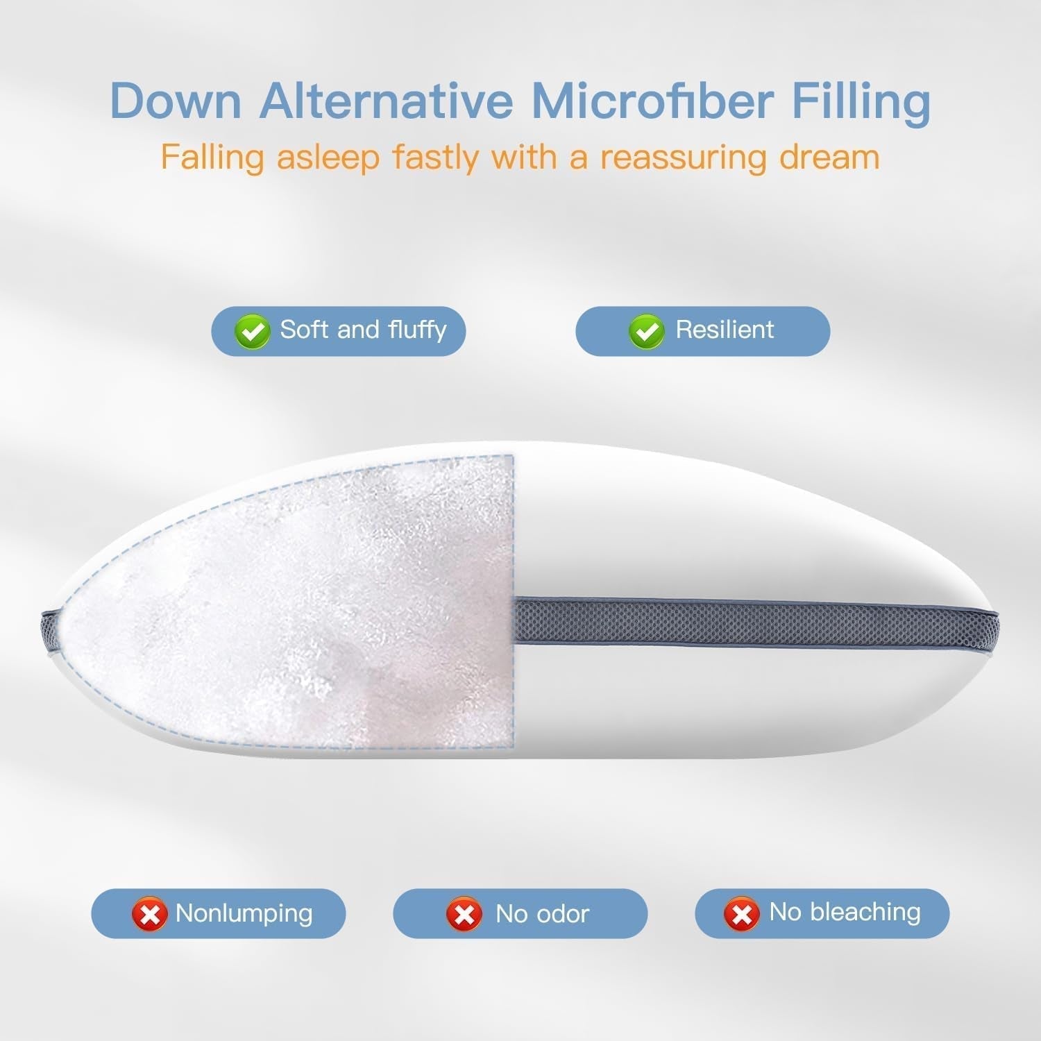 Maxzzz Oreiller de luxe de qualité hôtelière, oreiller de couchage doux avec côté en maille respirante, oreiller de lit élastique, oreiller de soutien, rembourrage en microfibre alternative avec duvet (taille standard), 2 pièces