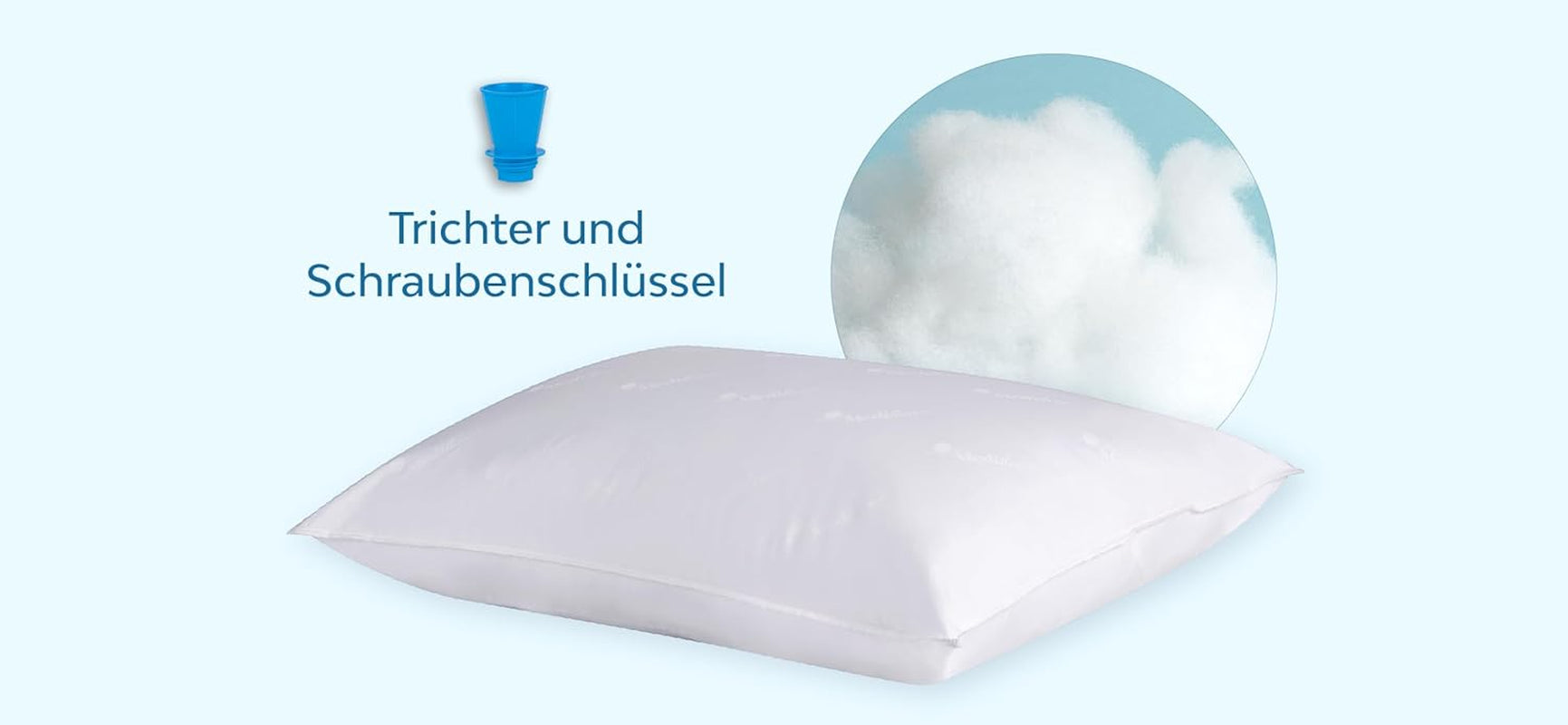 - Le noyau d'eau fournit le soutien nécessaire. Comme l'eau ne peut pas être davantage comprimée sous pression, elle s'écoule là où il y a de l'espace et soutient ainsi efficacement les cavités, par exemple au niveau du cou. Contrôlez la quantité de remplissage selon vos propres besoins et trouvez le degré de dureté qui vous convient - qu'il soit dur, moyen ou mou. Le réservoir d'eau est fabriqué dans un matériau spécial qui a été continuellement développé depuis son invention en 1994. Il est garanti étanche et dépasse de loin la durée de vie normale d'un oreiller.