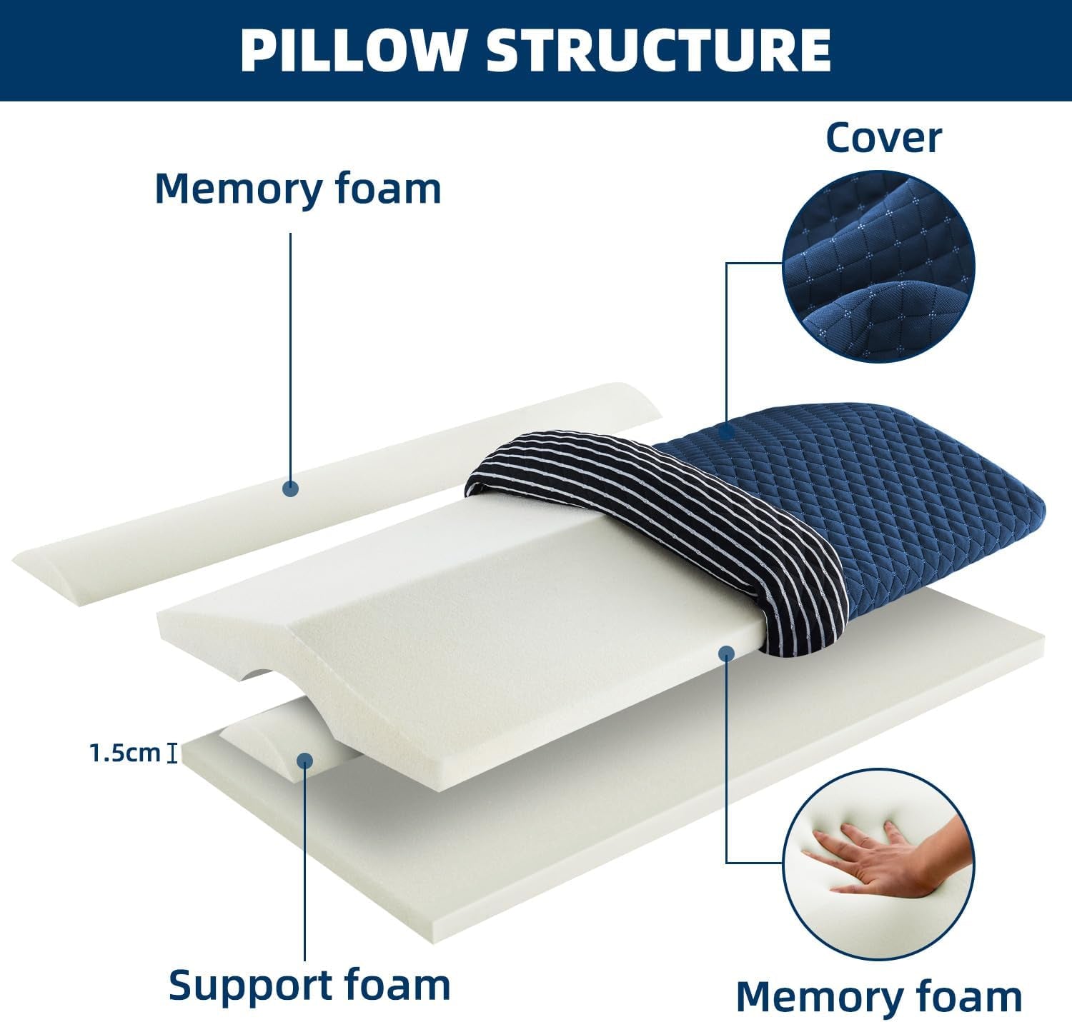 - ( 3 ) Informations sur le produit : Taille assez grande : 60 * 30 * 6,5/3,5 cm, convient à la plupart des personnes ayant différents types de corps et différentes positions de sommeil. L'oreiller lombaire est en mousse à mémoire de forme, fermeté et réglable en hauteur. La housse de coussin est amovible et lavable.