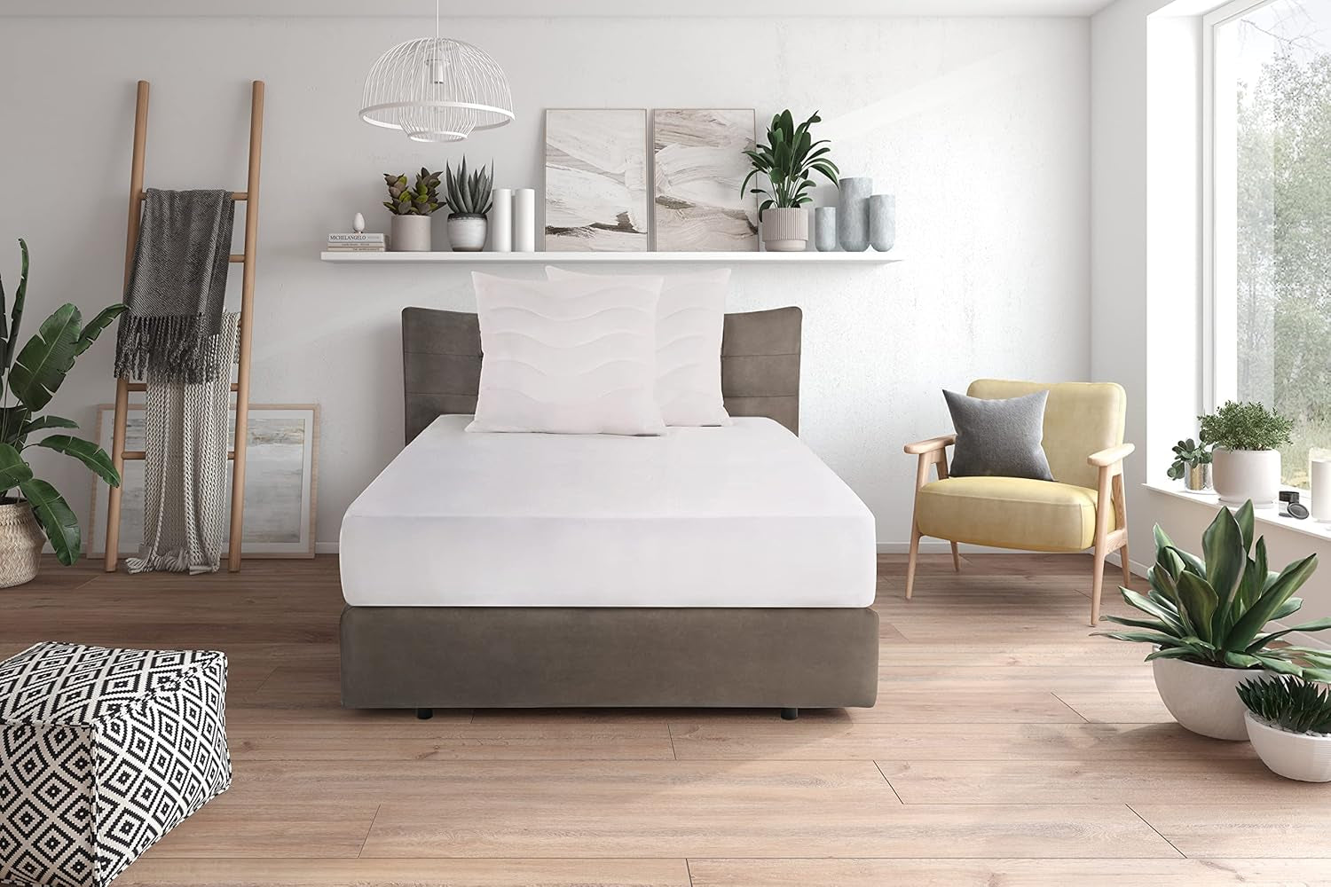 - HOUSSE DE HAUTE QUALITÉ - 100 % pur coton - le matériau naturel est particulièrement doux et respirant, matelassé de haute qualité avec des fibres climatiques qui assurent une évacuation optimale de l'humidité.