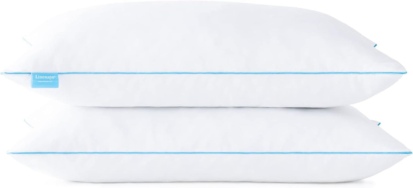 Oreiller Linenspa 40X80 Cm - Lot de 2 - Oreiller moyennement ferme - Oeko-Tex - Composé de flocons de mousse à mémoire de forme blancs déchiquetés
