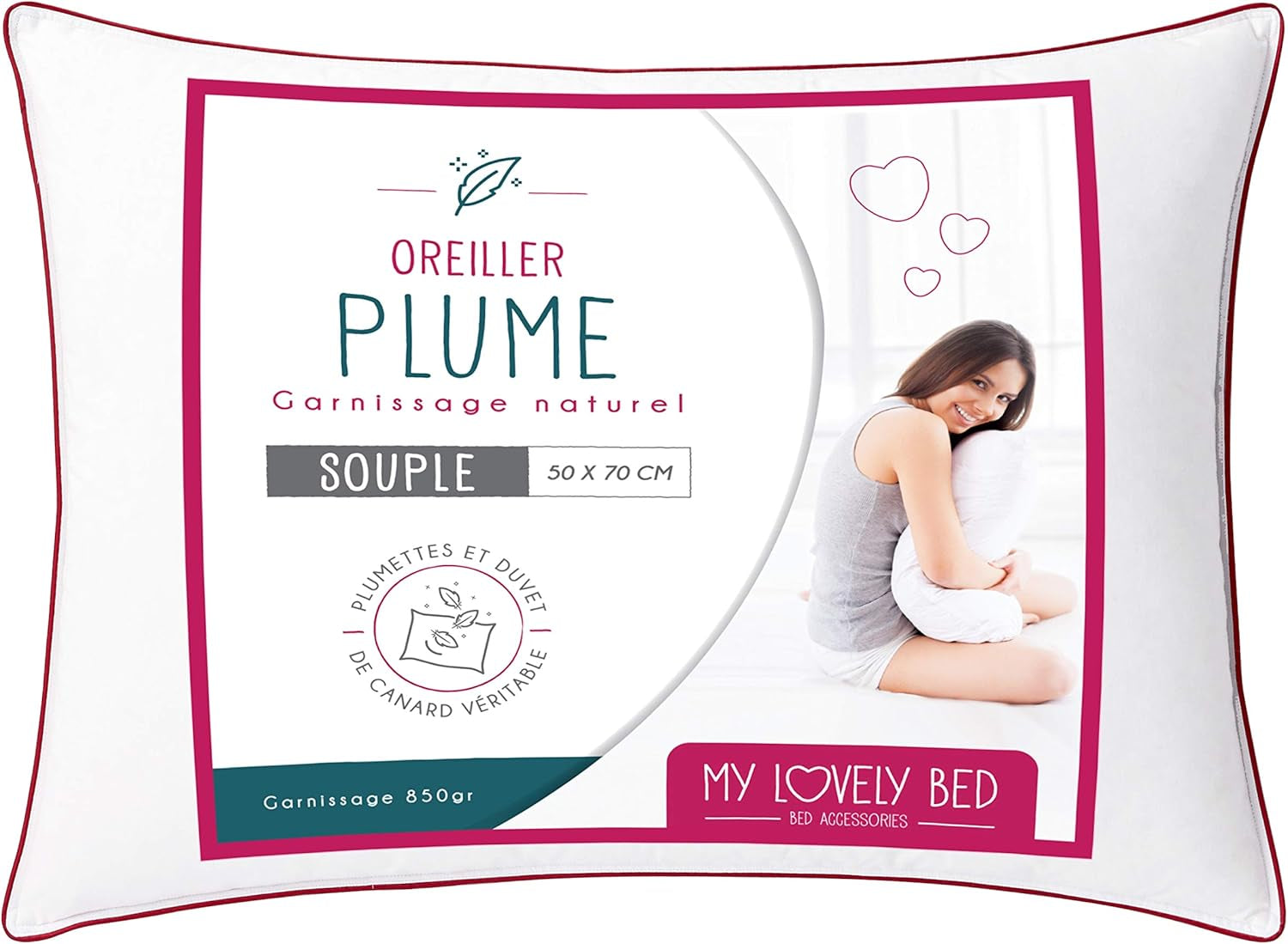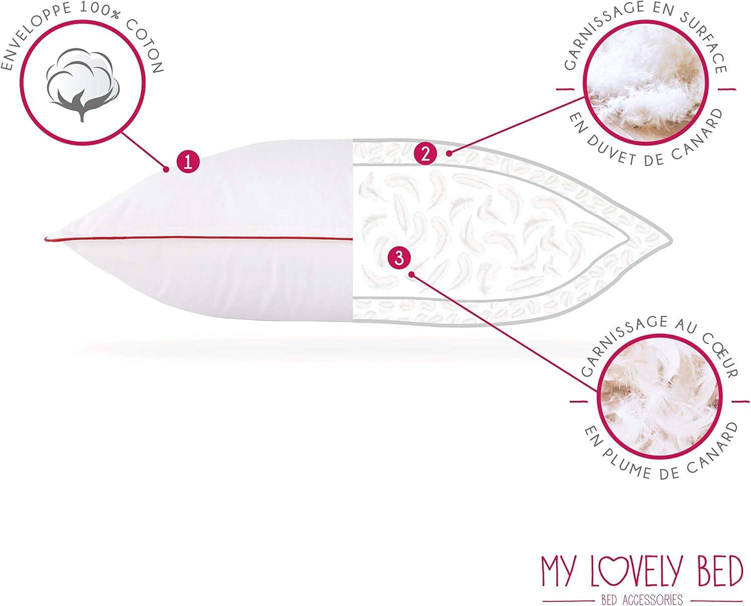 - Oreillers en plumes | 100% duvet de canard entouré d'un noyau 50% duvet et 50% plumes