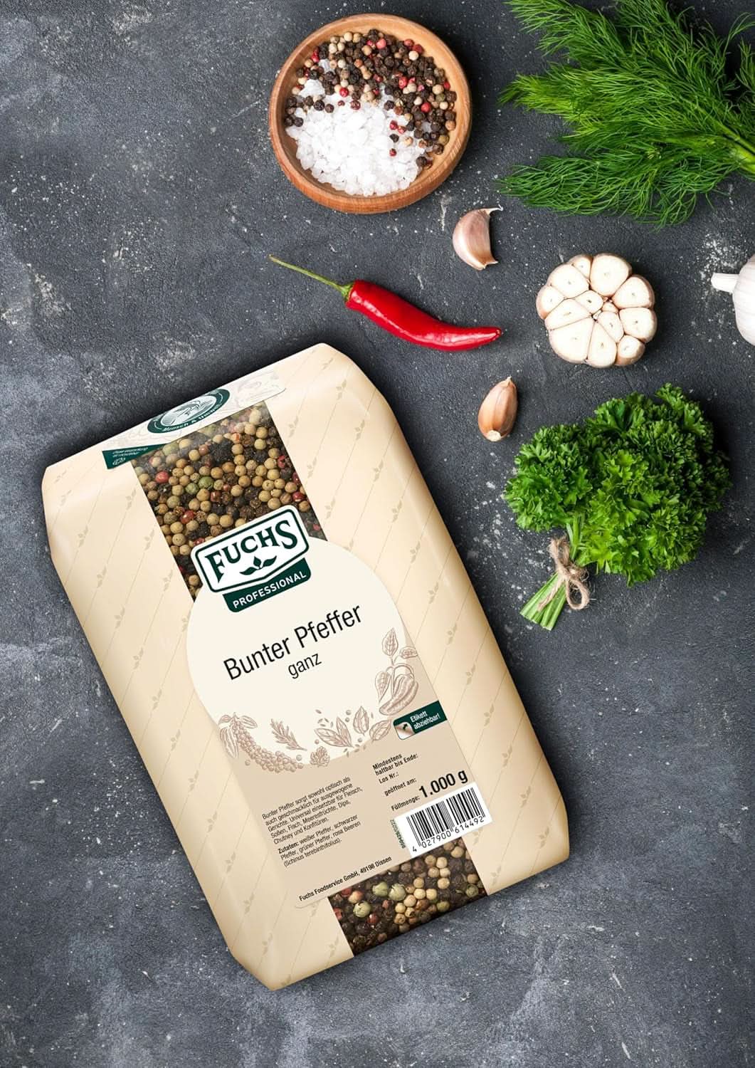 Le poivre est devenu un élément indispensable dans toute cuisine et doit toujours être en stock. Avec ce pack de 1 kg de Fuchs, le poivre devient une expérience ! Non seulement ce sont des grains de poivre entiers, qui se conservent mieux dans un moulin à poivre, mais ils sont également mélangés de manière colorée. Un délice coloré de poivre vert, blanc et noir, qui devient une expérience gustative unique avec les haricots roses. Les haricots sont polyvalents et peuvent être utilisés pour aromatiser les vinaigrettes, le poisson fumé, la patsa, les légumes et les salades de fruits. Les plus audacieux pourront également les utiliser pour créer des desserts chocolatés insolites ou à des fins décoratives.