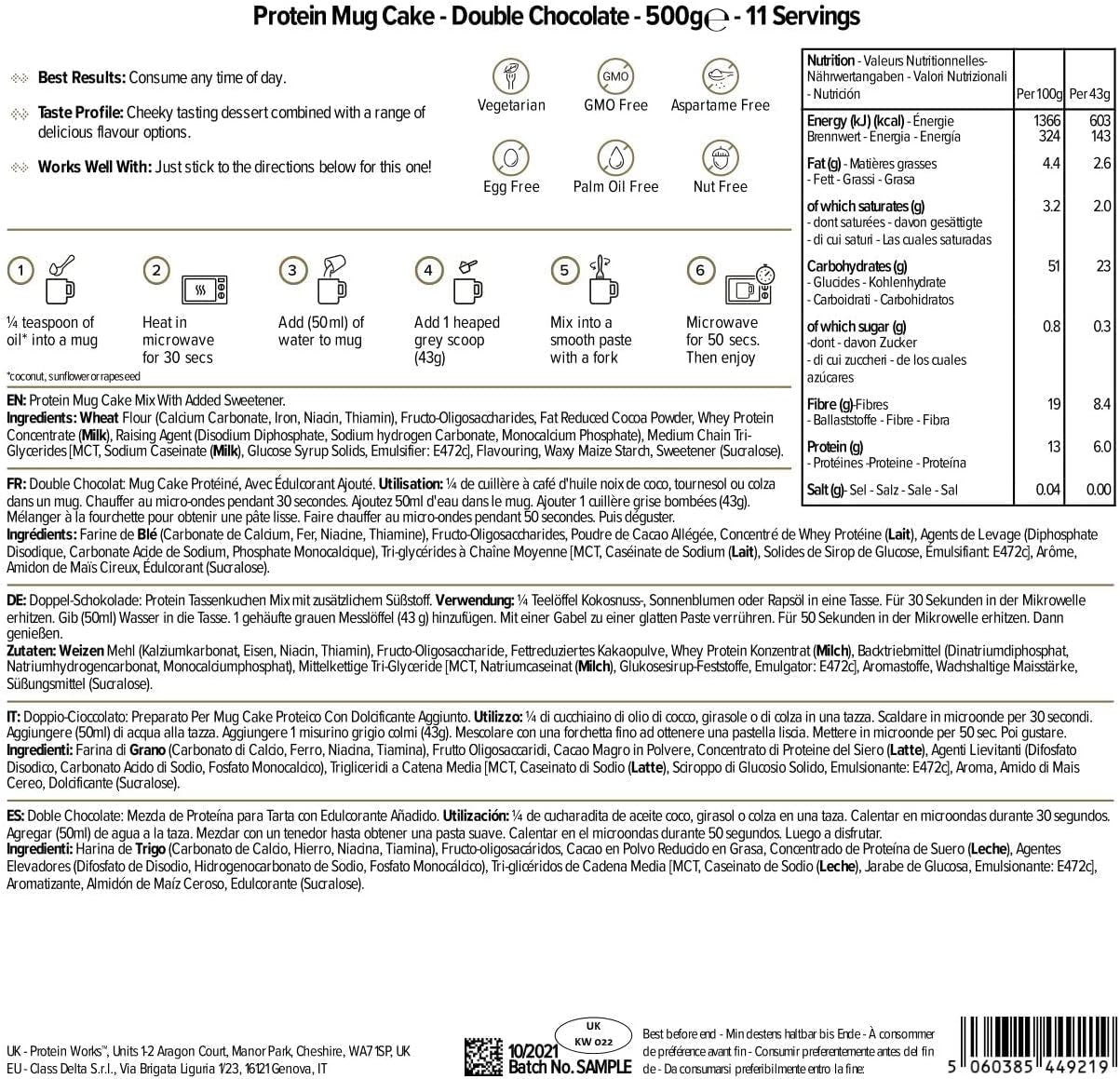 Protein Works Mug Gâteau protéiné | Crème au chocolat | Ce délicieux dessert est riche en protéines et en fibres 500g