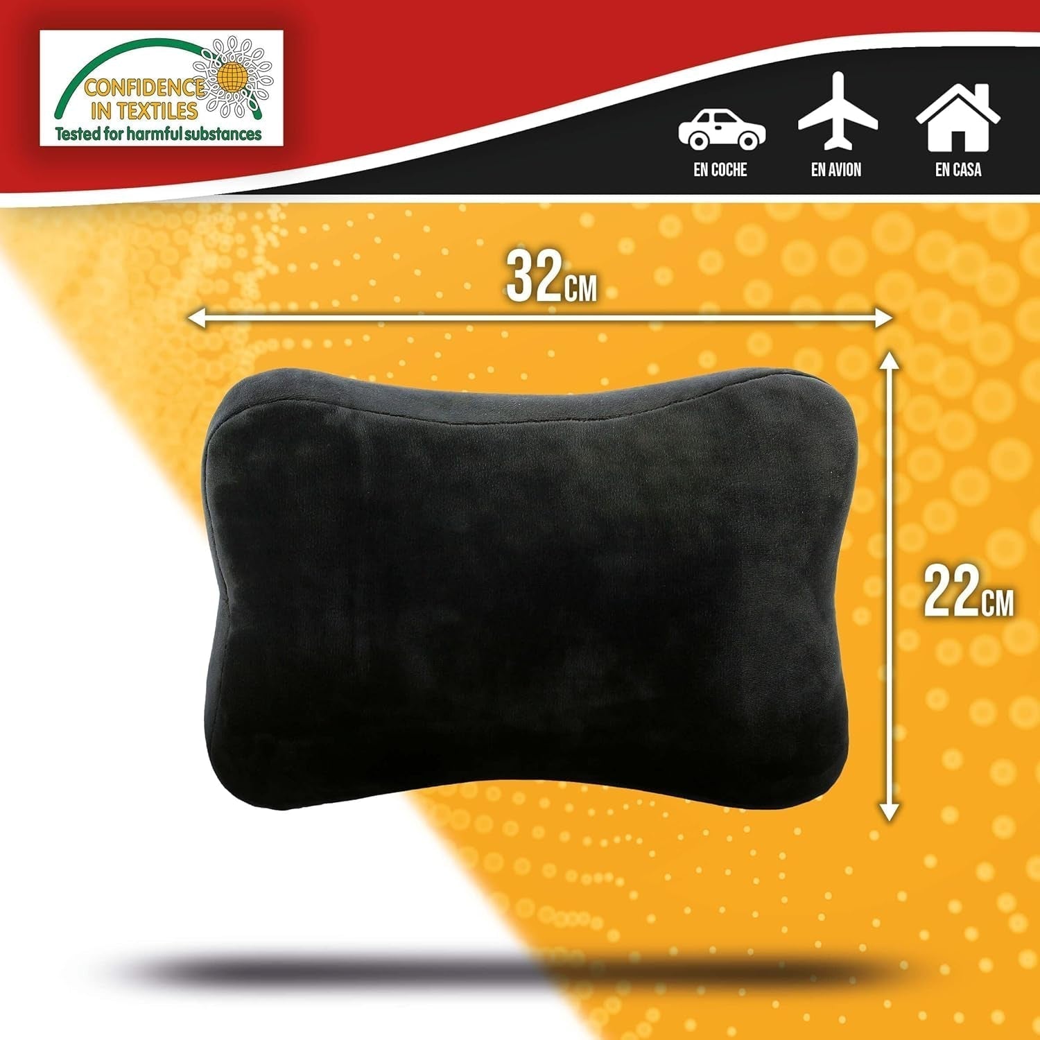 - L'oreiller est fait de matériaux de haute qualité, durables et résistants à l'usure. Il est fabriqué avec un système de perles haute densité qui offre un confort durable et un soutien adéquat. Ce coussin est facile à utiliser et peut être placé sur n'importe quelle chaise, canapé ou voiture. La conception ergonomique garantit que l'oreiller s'adapte parfaitement à la courbe naturelle du dos, soulageant ainsi la pression sur les muscles et améliorant la posture. Vous pouvez personnaliser l'oreiller en fonction de vos besoins personnels et profiter du confort et du soutien supplémentaires qu'il offre. Bref, si vous recherchez un oreiller de haute qualité pouvant améliorer votre confort d'assise, notre oreiller appui-tête et lombaire est un excellent choix. Avec sa conception ergonomique, ses matériaux de haute qualité et sa portabilité facile, cet oreiller peut vous aider à réduire les maux de dos et à améliorer votre posture partout où vous l'utilisez. Fabriqué selon les normes Oeko-Tex. Dimensions : 32 cm x 22 cm, couleur : noir