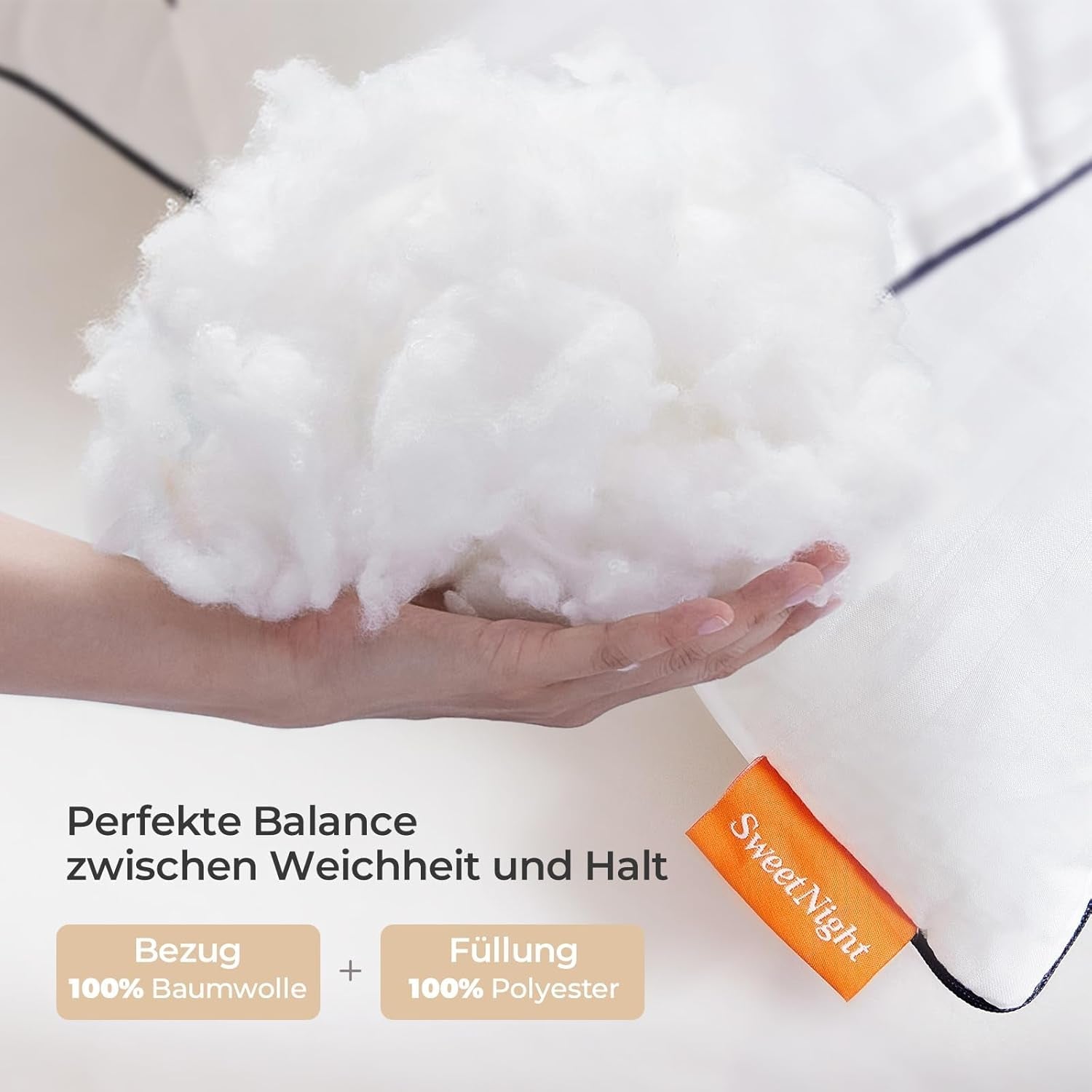 Sweetnight Lot de 2 oreillers 80 x 80, oreiller en microfibre 1300 g, oreiller de soutien du cou doux pour toutes les positions de sommeil, housse respirante 100 % coton, certifié Oeko-Tex