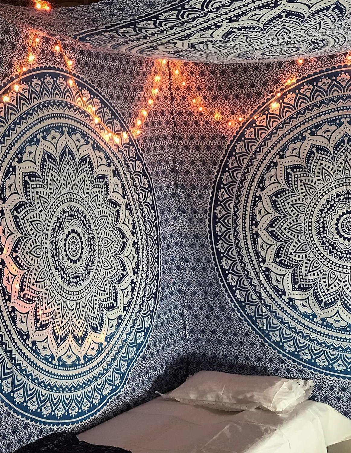 Tapisserie mandala bleu indien, décoration esthétique de chambre