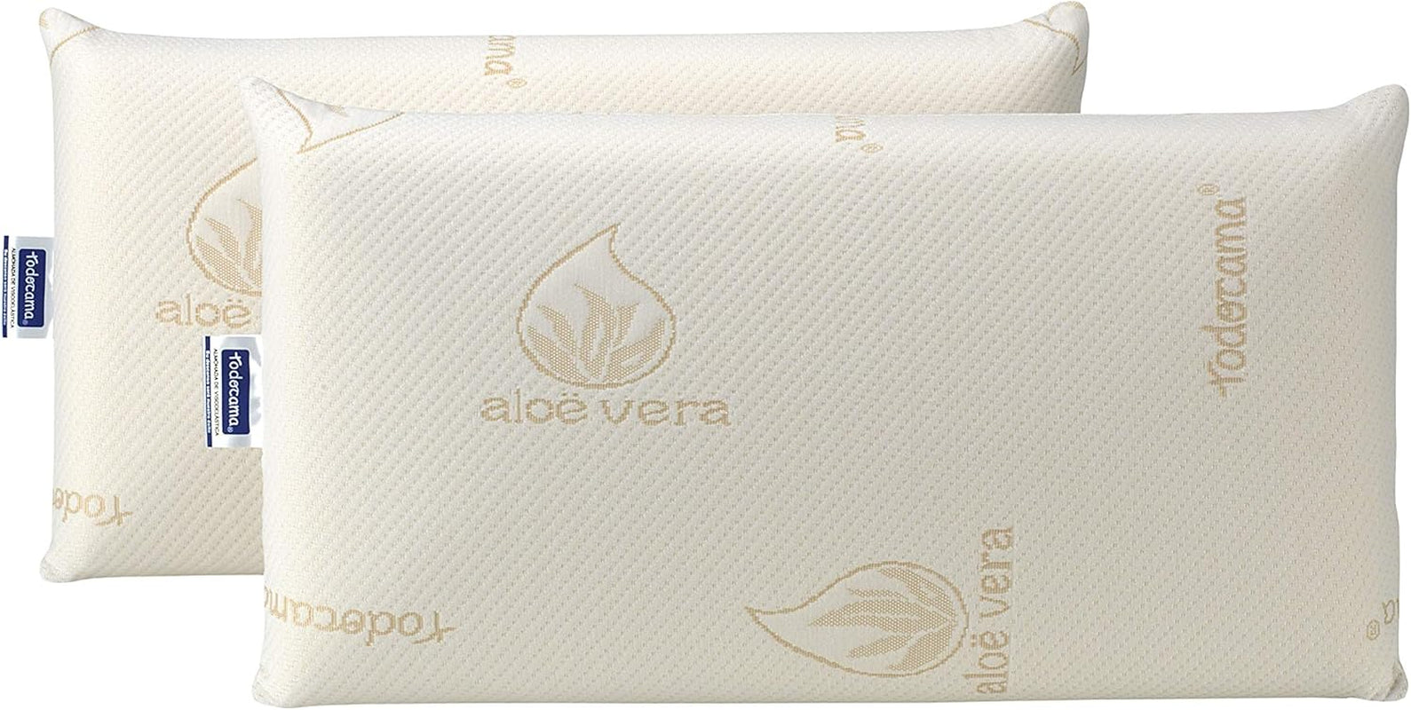 Todocama Oreiller en mousse à mémoire de forme, noyau compact, housse à double fermeture éclair, tissu Aloe Vera Plus, thermorégulant, réglable au niveau du cou, lot de 2 (2 pièces – 70 cm)