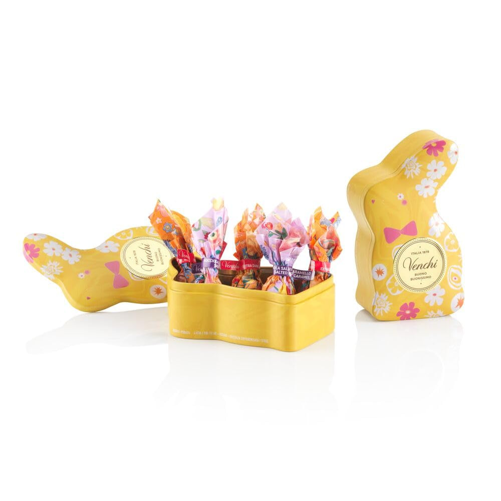 Venchi, boîte en forme de lapin avec 6 œufs en chocolat, saveurs variées, 66 grammes