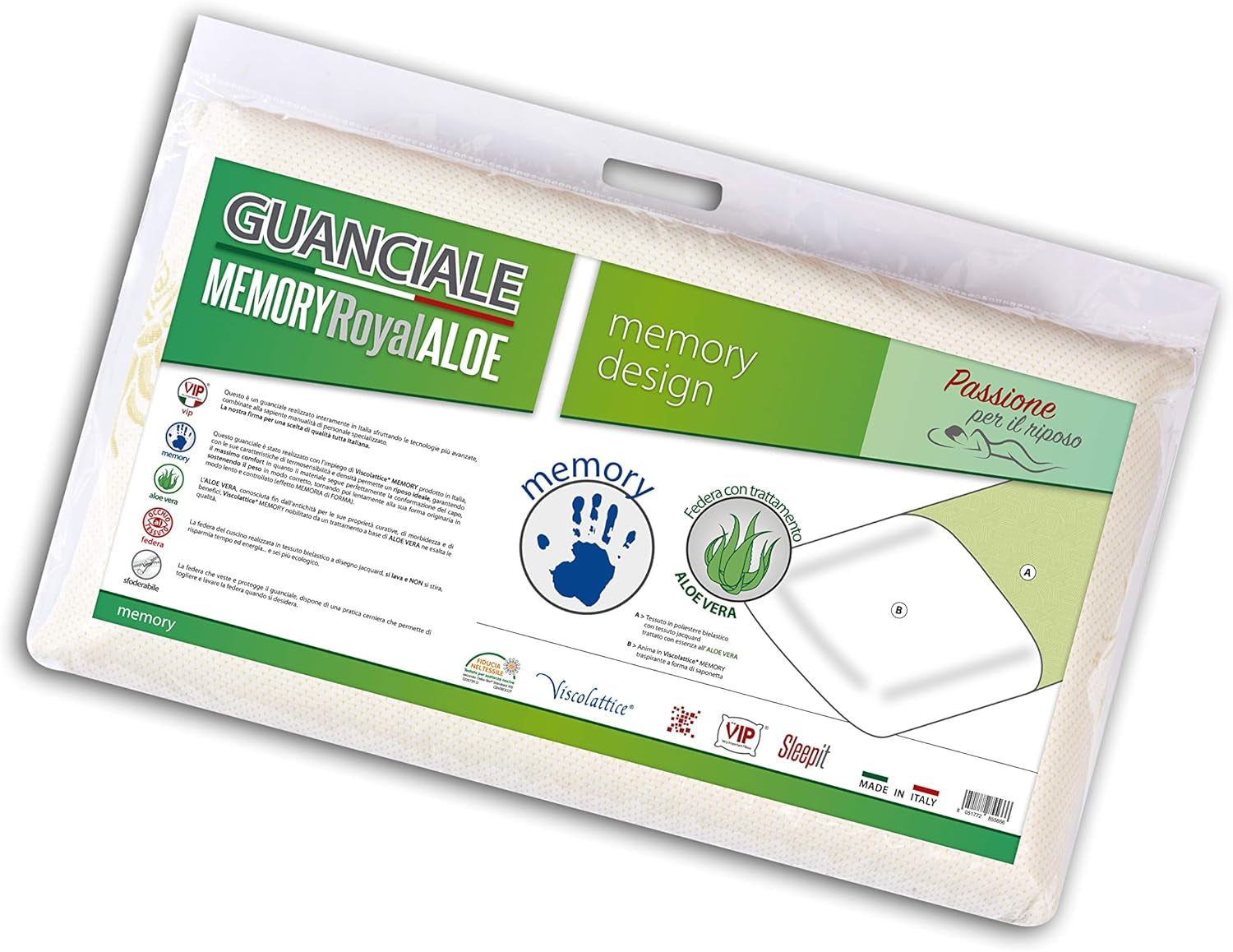 VIP. Oreiller Extra Large en Mousse à Mémoire de Forme 100% Viscoélastique avec Housse Déhoussable 42 X 68 cm Hauteur 9 Fabriqué en Italie