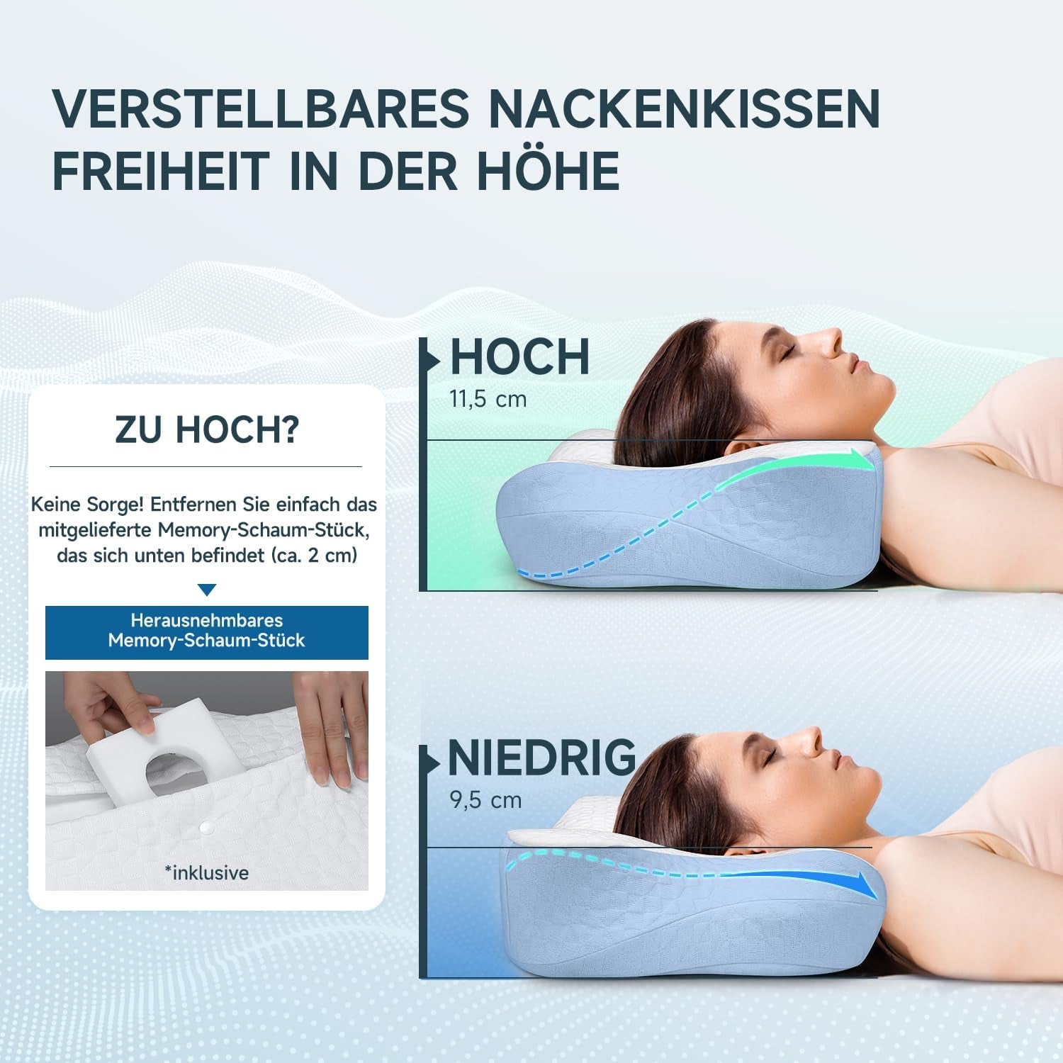 - 🙠Profitez d'un confort personnalisé avec notre oreiller réglable en hauteur ! Que vous dormiez sur le dos, sur le côté ou sur le ventre, la hauteur réglable et la possibilité d'ajouter ou de retirer une couche de 2 cm d'épaisseur vous permettent de personnaliser votre sommeil.