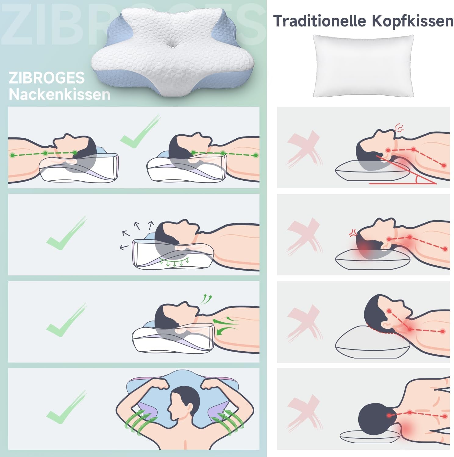- 🙠Profitez du confort confortable du coussin cervical Zibroges ! Conçu en Allemagne, cet oreiller au design ondulé épouse la forme de votre tête et de votre cou, tandis que la mousse à mémoire de forme de haute qualité s'adapte à votre position de sommeil préférée pour une matinée agréable.